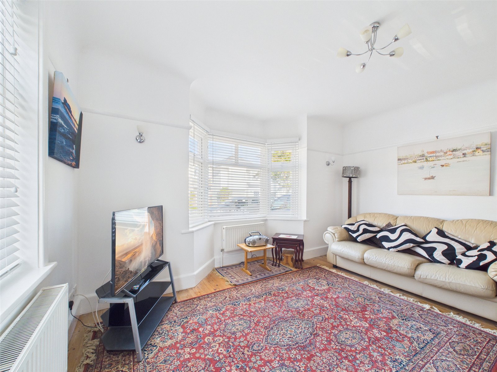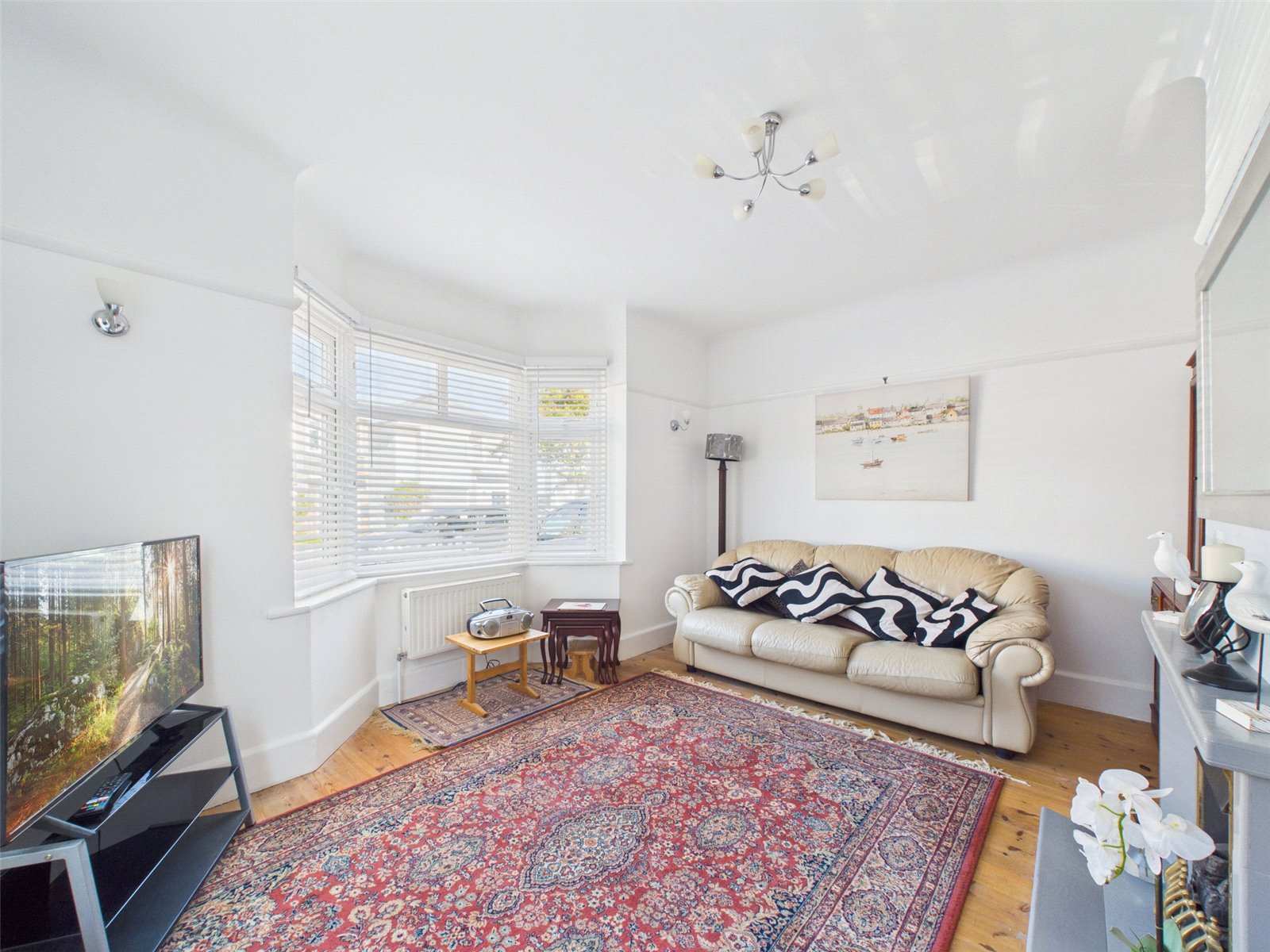 The living room, which is set to the front of the property, offers space for sofas and other living room furniture.