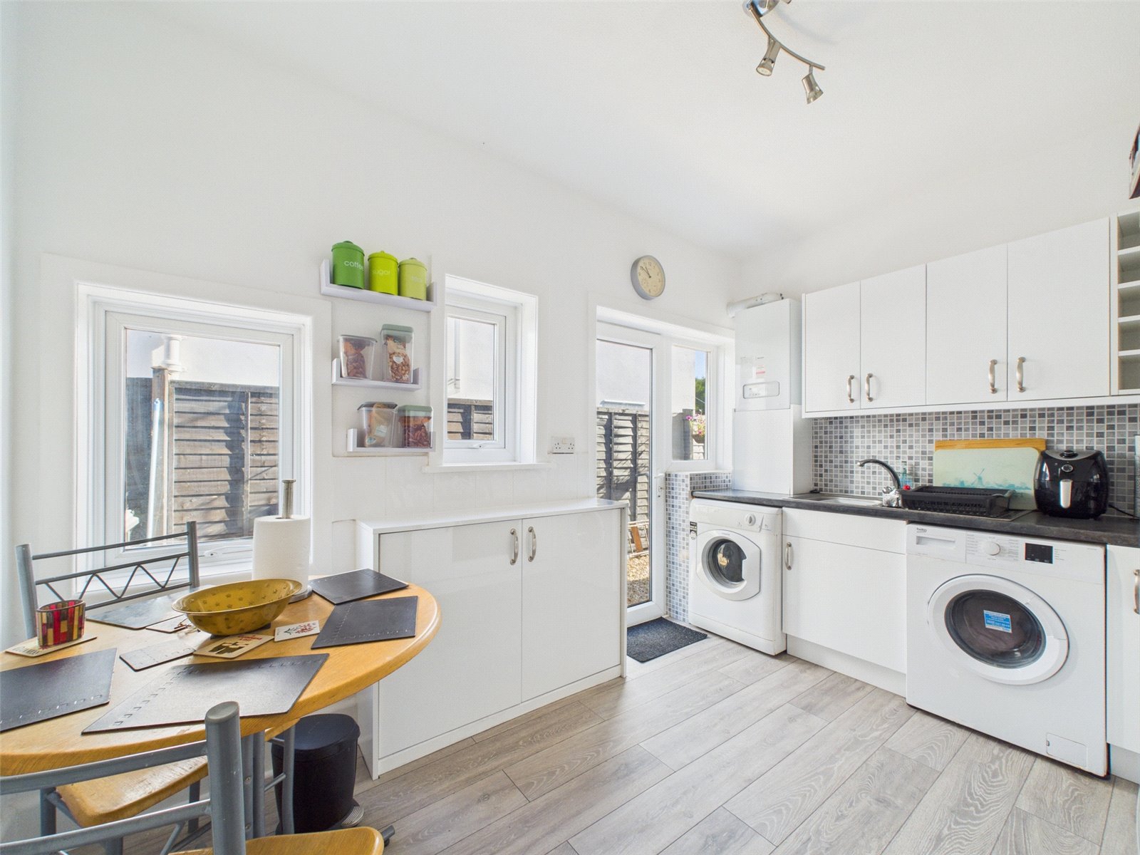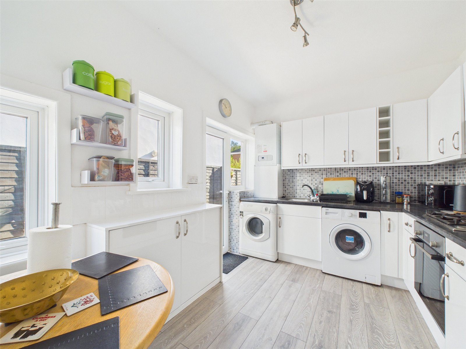 The modern kitchen/Breakfast room has been fitted with a range of eye level and base units and some integrated appliances. There is space for a Breakfast table and a door offers access to both the rear garden and the front of the property, via a secure timber gate.