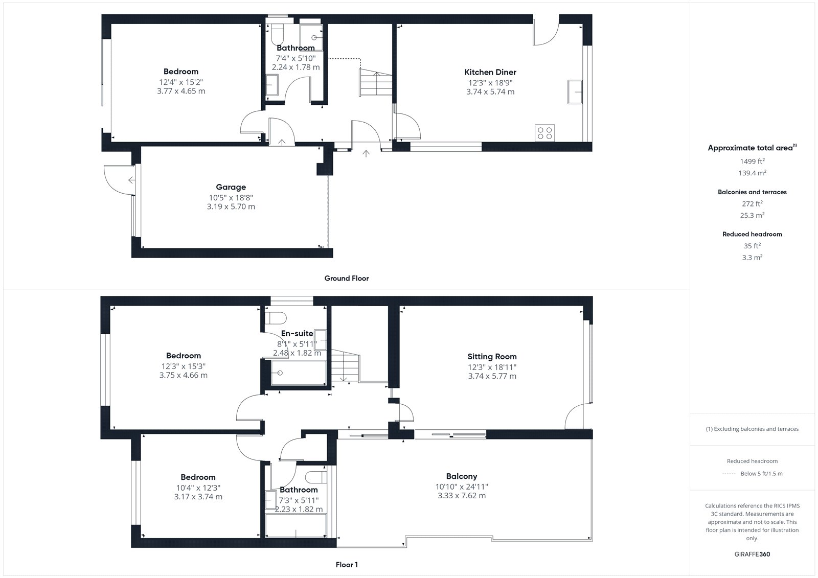 - Three double bedrooms and three bathrooms over the two floors including an en-suite to master