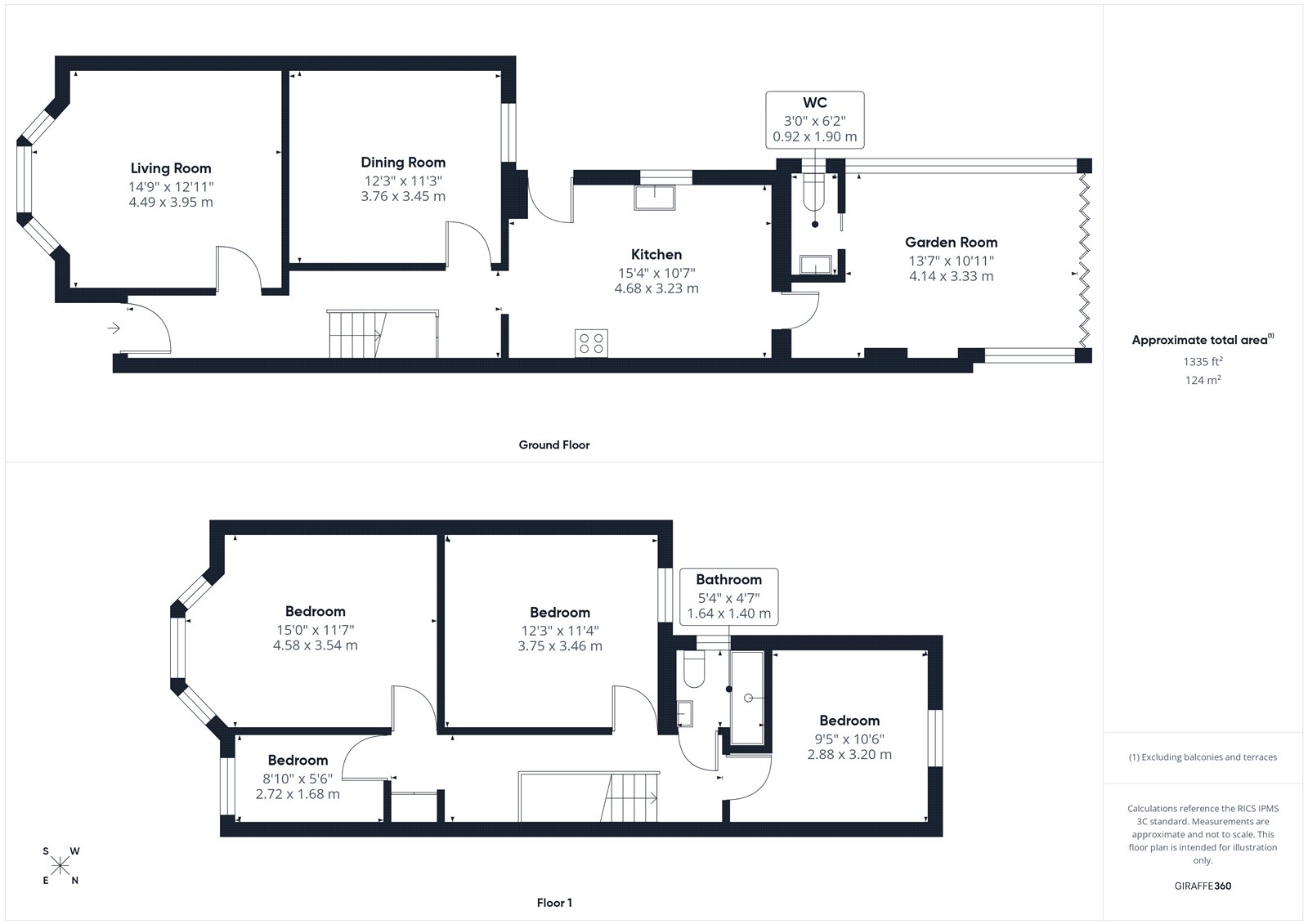 The ground floor features a welcoming entrance leading into a bright and spacious living room, enhanced by a bay window that floods the space with natural light. Adjacent is a separate dining room, perfect for entertaining, which flows through to a well-sized kitchen offering ample workspace and storage. To the rear, a delightful garden room provides an additional reception space with views over the garden, making it ideal as a family room, home office, or playroom. A conveniently located WC completes the ground floor.