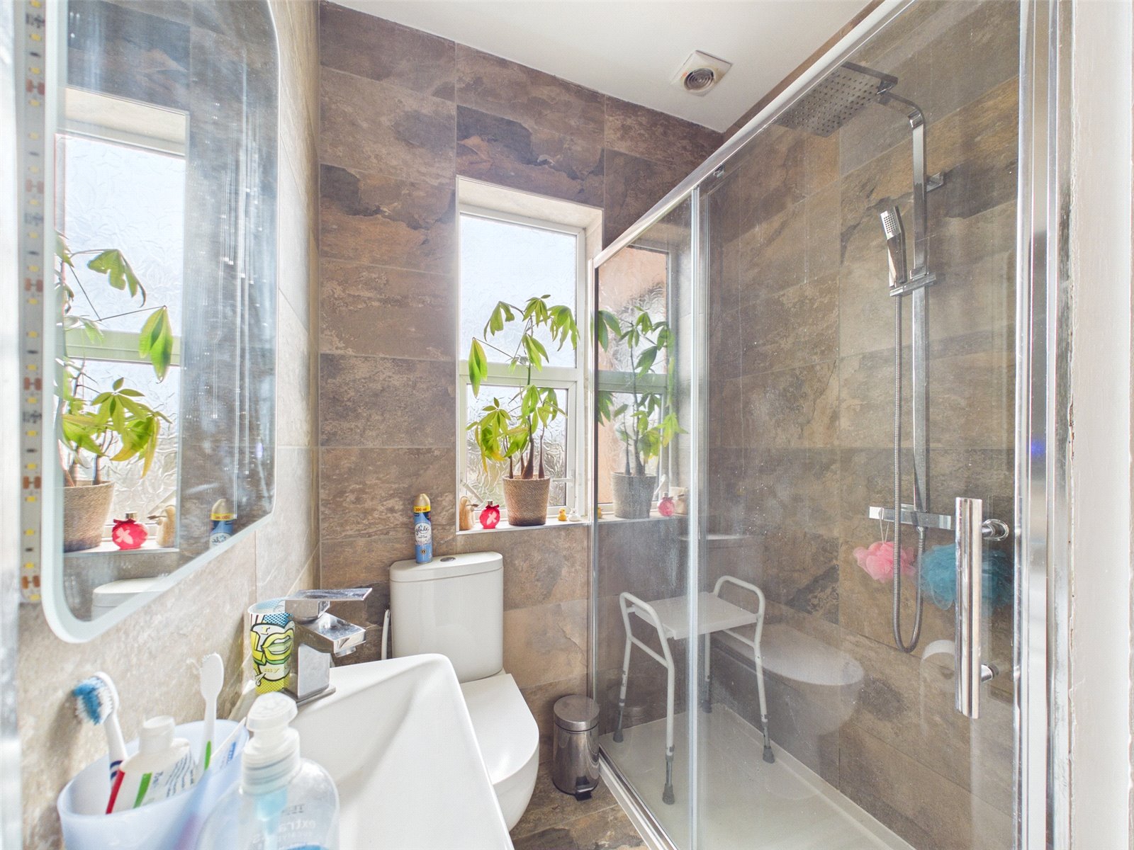 Upstairs, the property offers four bedrooms. The principal bedroom is a generous double with a bay window, complemented by a further spacious double and two additional bedrooms, ideal for children, guests, or study space. A modern shower room serves all bedrooms.