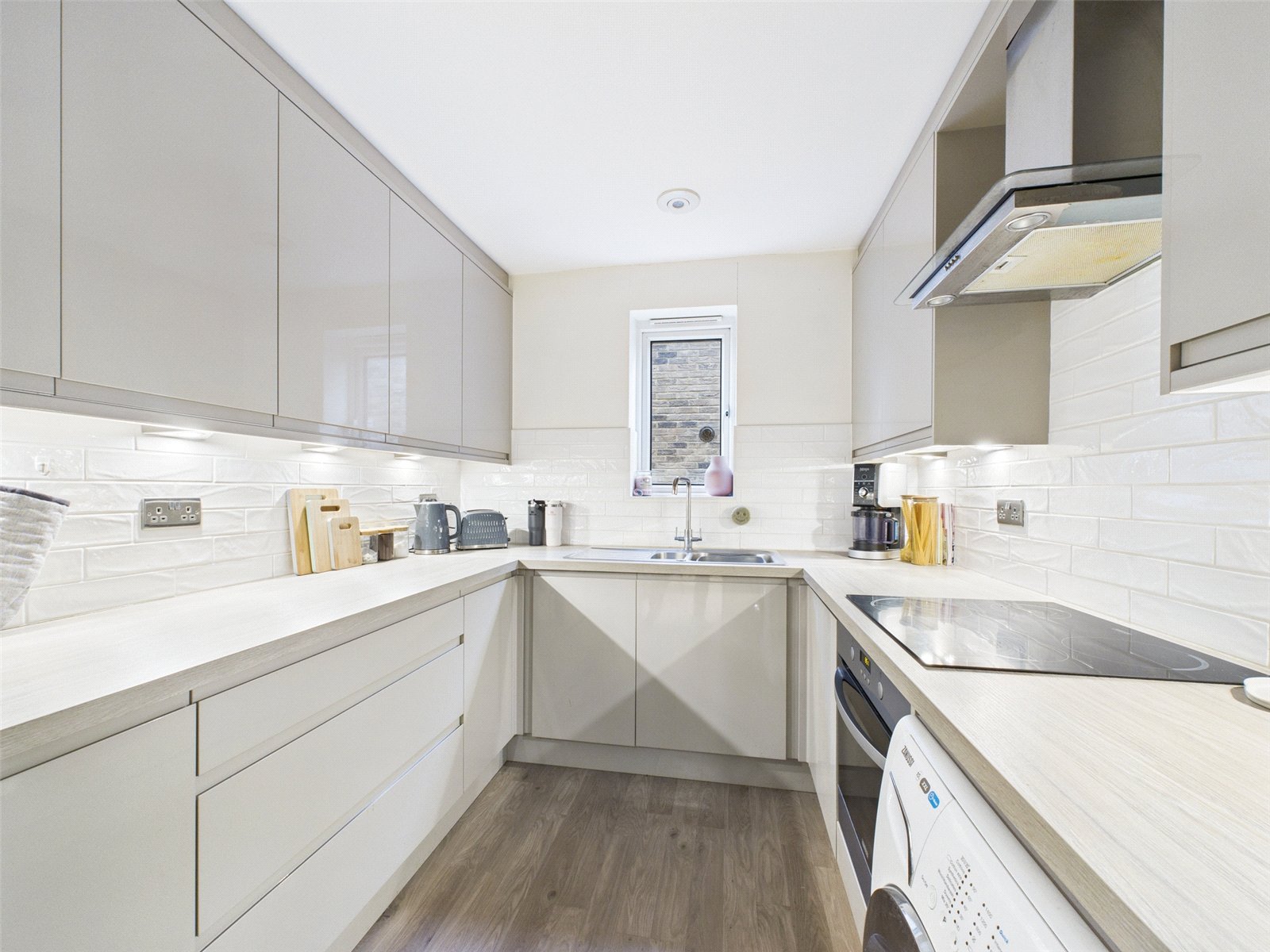 The separate kitchen sits just off the living space and is neatly arranged with a range of fitted units and worktops, providing excellent storage and preparation space.