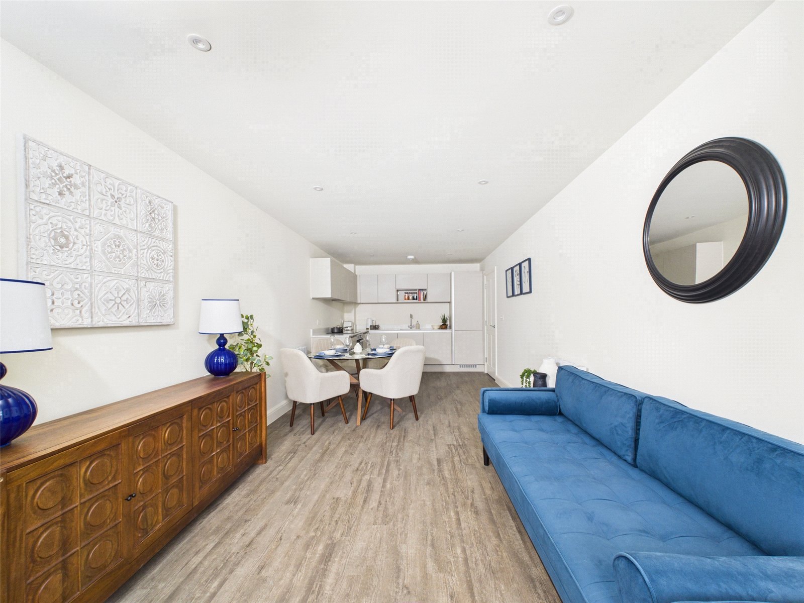 GENERAL FINISHES: Amtico (or similar)flooring in all apartment hallways, bathrooms and kitchen/living areas. Carpeted bedrooms. Energy efficient recessed LED lighting in kitchens and bathrooms. Telephone and data points to all principal rooms. Sky+ connectivity in living room and master bedroom. Video entry phone in all apartments. Double glazed windows. Ecostrad, smart-ceramic electric heating.