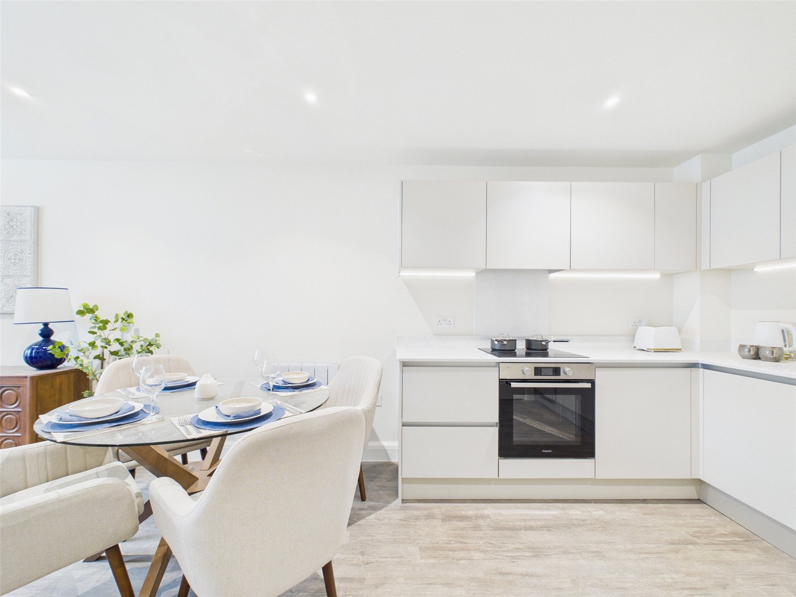 GENERAL FINISHES: Amtico (or similar)flooring in all apartment hallways, bathrooms and kitchen/living areas. Carpeted bedrooms. Energy efficient recessed LED lighting in kitchens and bathrooms. Telephone and data points to all principal rooms. Sky+ connectivity in living room and master bedroom. Video entry phone in all apartments. Double glazed windows. Ecostrad, smart-ceramic electric heating.