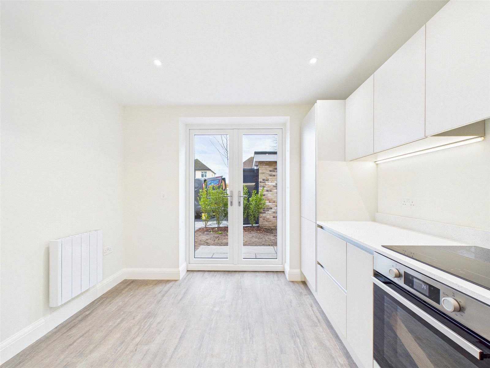 The living room and kitchen overlook the private garden with the kitchen featuring French doors leading giving direct garden access.