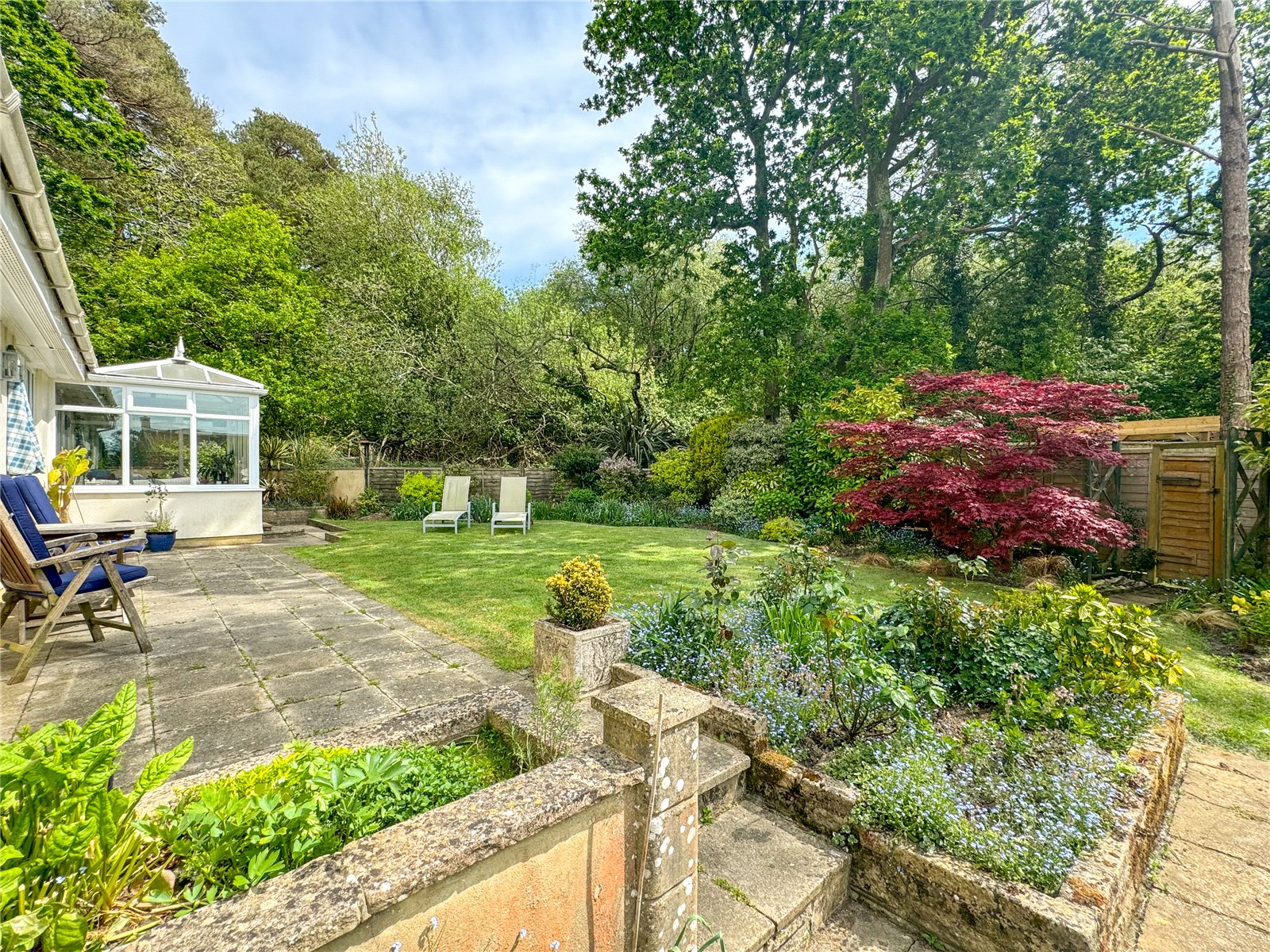 OFFERED WITH NO FORWARD CHAIN, A SPACIOUS TASTEFULLY PRESENTED THREE BEDROOM BUNGALOW WITH A DOUBLE GARAGE AND A SECLUDED REAR GARDEN, TUCKED AWAY IN A QUIET VILLAGE LOCATION WITH A SYLVAN BACKDROP.