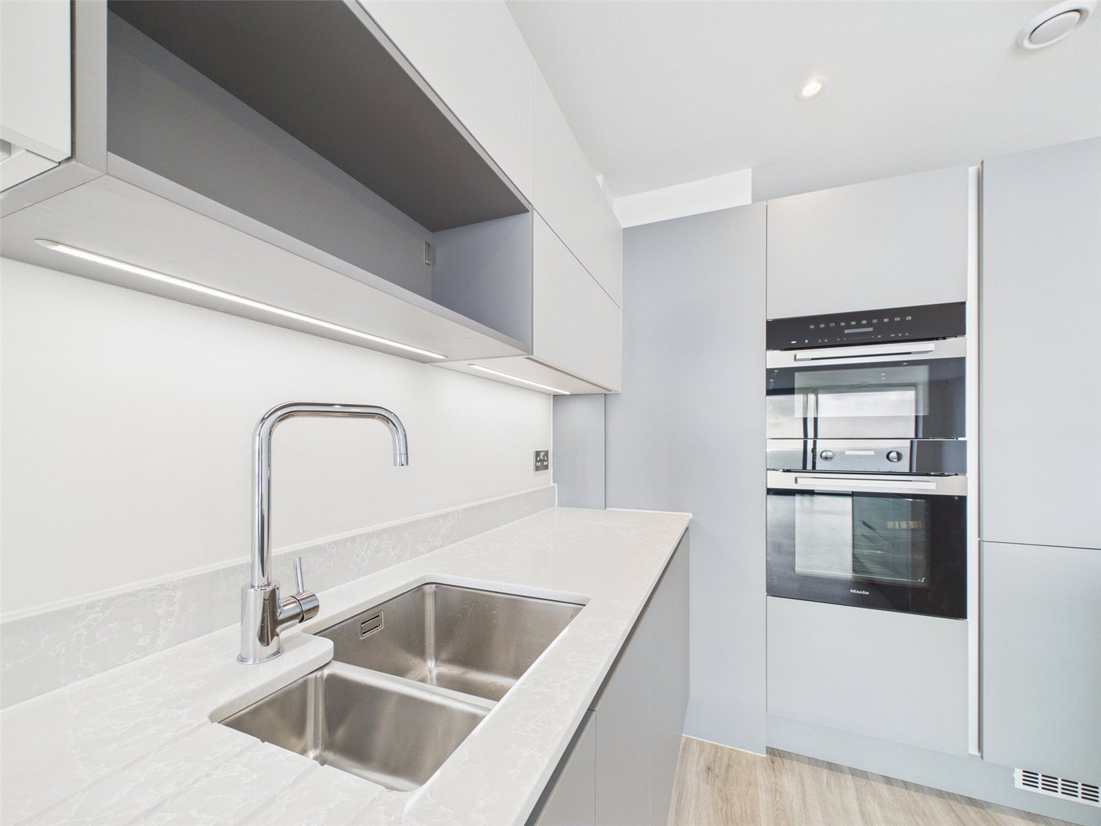 The carefully designed kitchen comes complete with integrated Miele appliances and features an Island making for a sociable space to cook and entertain.