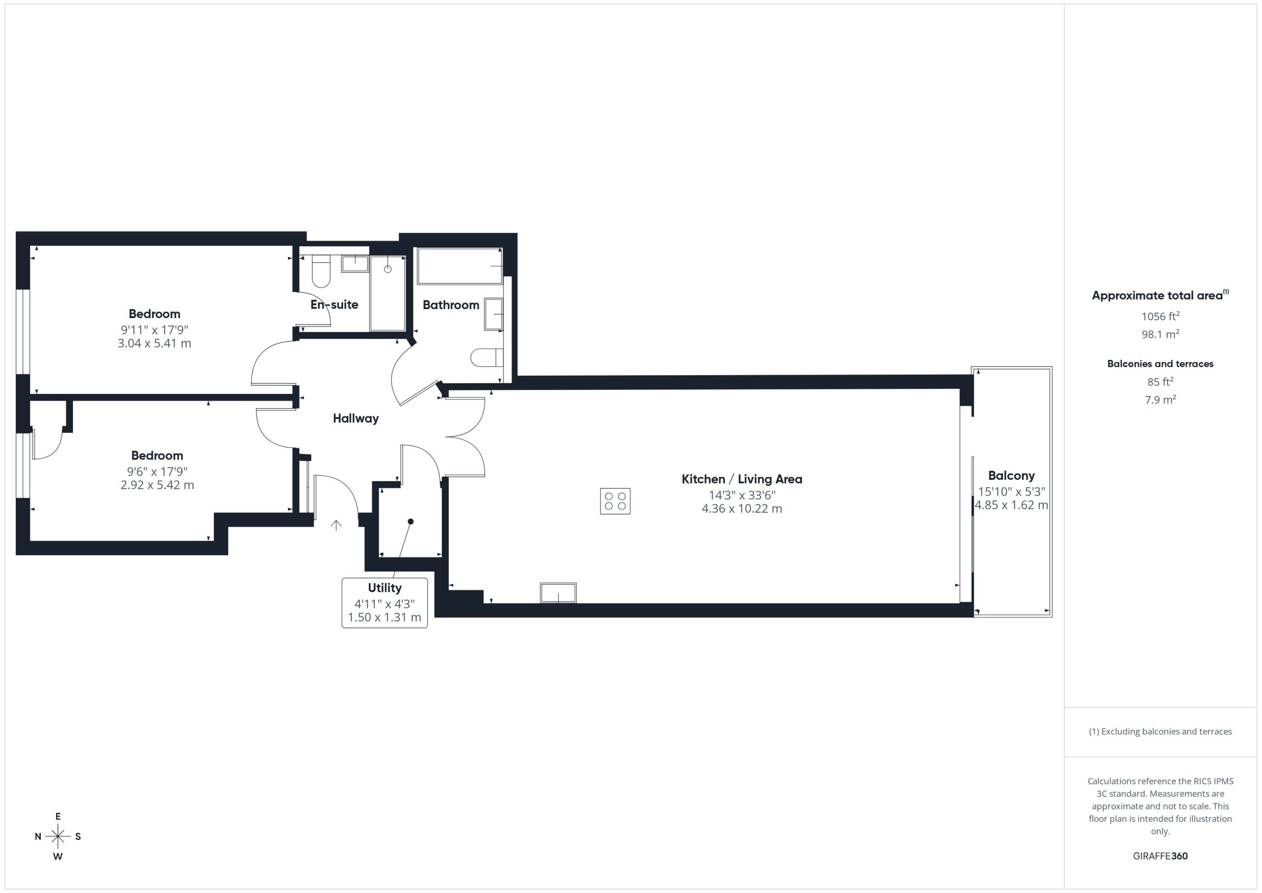 - South facing balcony