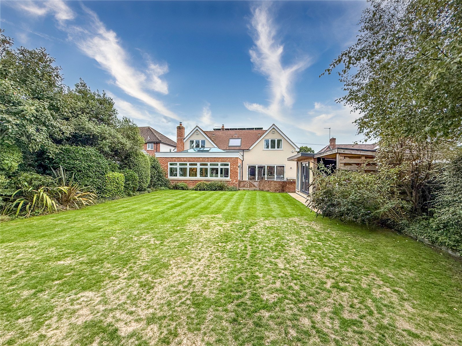 The rear garden is a key feature of this home. There is a patio area with an outdoor kitchen set up. The remainder of the garden is laid to lawn with some mature borders. There are TWO GARDEN CHALETS with power and internet.