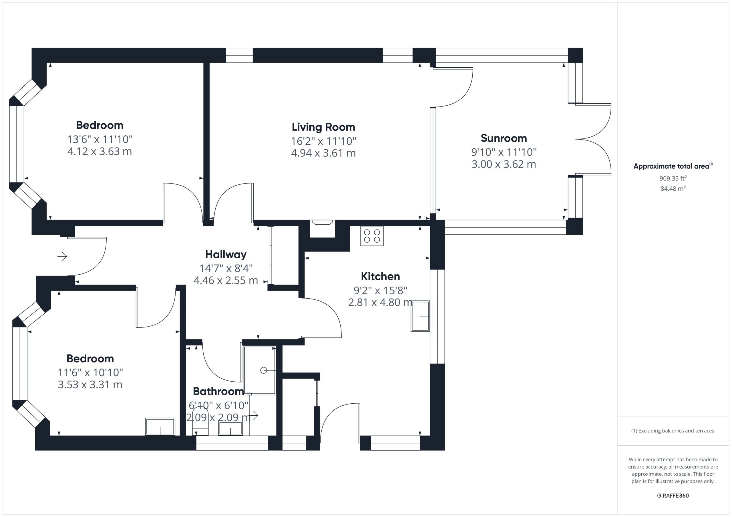 A single doors leads from the living room into the sun room which in turn has a set of glazed French doors leading on to the rear garden. The sun room is of UPVC construction with a polycarbonate roof and tilt and turn double glazed windows.