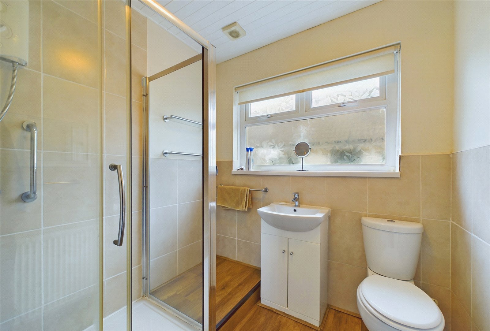 The property is served by a part tiled shower room with side aspect window. This was originally fitted with a full sized bath which was replaced in recent times with a walk in shower cubicle, although a bath could easily be reinstated if required. There is also a low level wc and hand wash basin with vanity storage beneath.