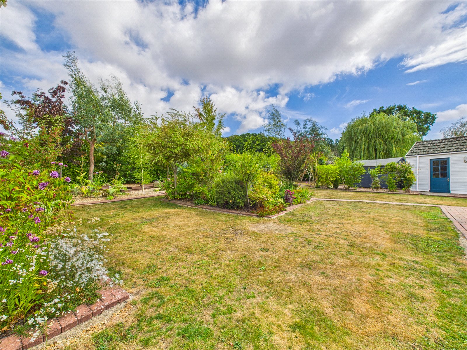 The large Rear Garden enjoys a easterly aspect and a good degree of seclusion, it is laid primarily to lawn with a brick seating area, a pond, a selection of borders and various seating areas.