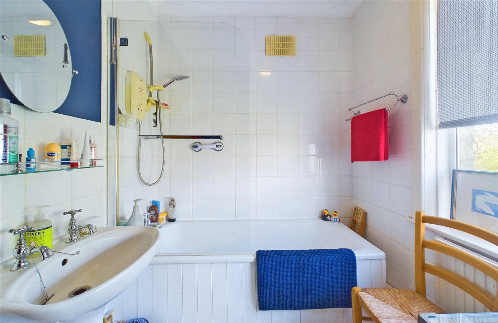The bathroom has a full sized bath with an electric shower over and a hand wash basin. There is a rear aspect frosted window and a built in cupboard housing the gas boiler. The separate WC is set adjacent to the bathroom which gives scope to 'knock these two rooms through' to create a larger family bathroom if required (subject to building regulation approval).