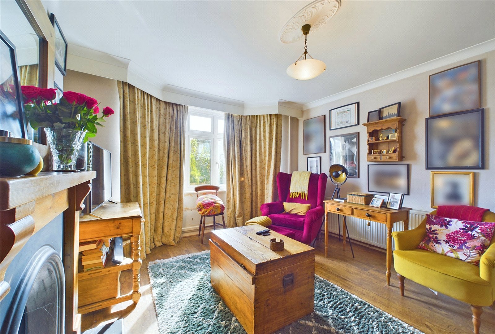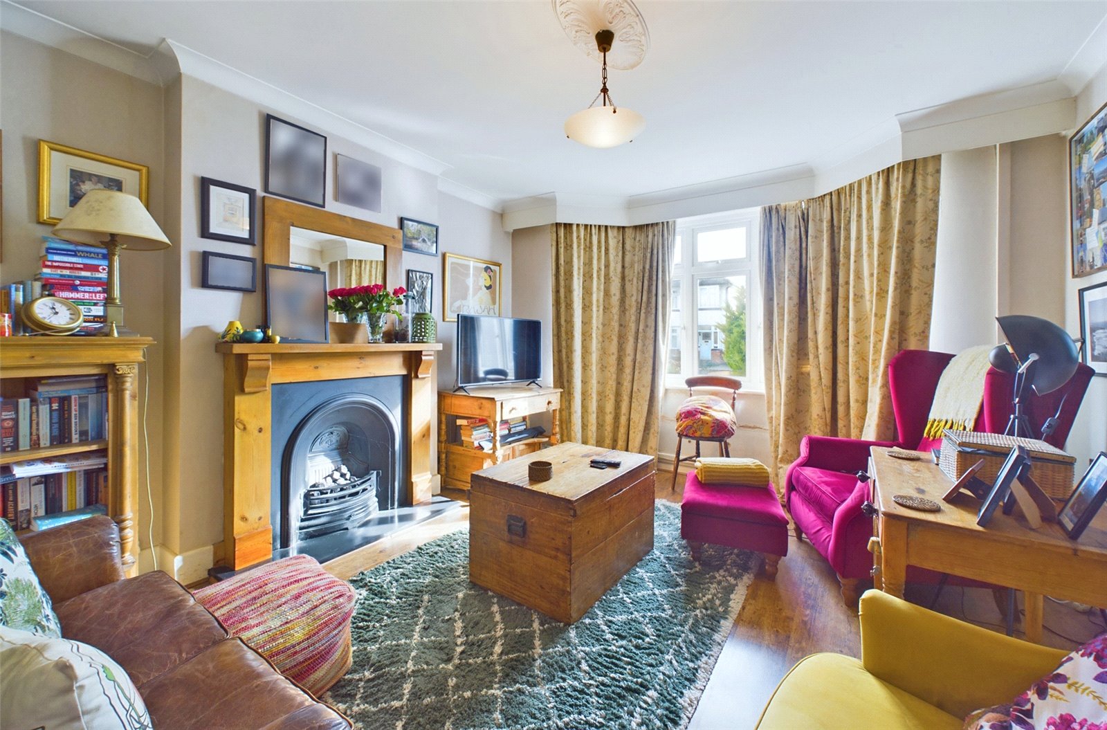 The living room overlooks the front of property via a sizeable bay window and has a period style fireplace with living flame effect fire.