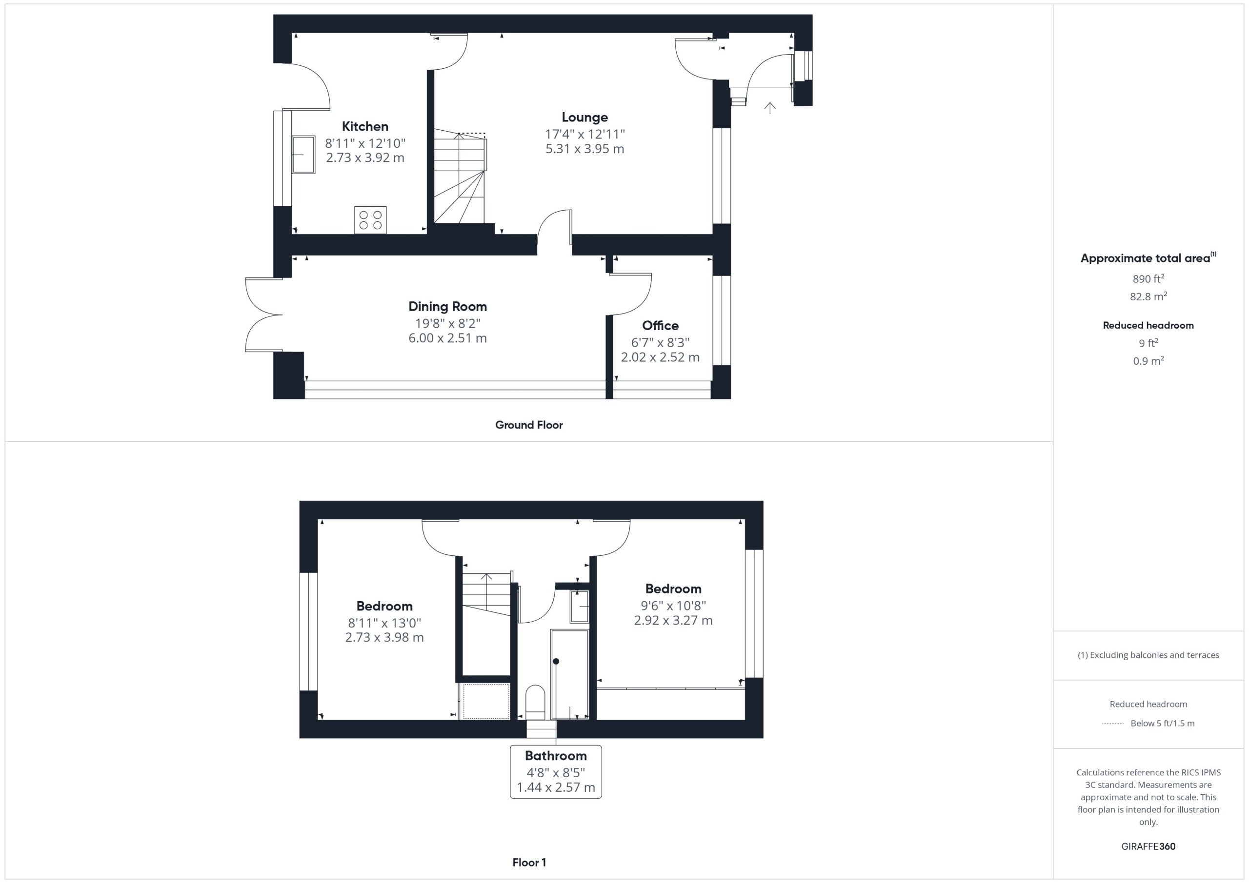 Stairs from the lounge lead to the first floor landing. There are two bedrooms which both have built in storage and a bathroom with wc, basin and bath with shower over.