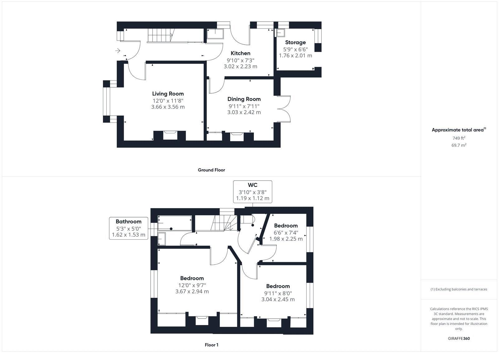 A family bathroom with bath and wash basin sits to the rear, alongside a separate WC.