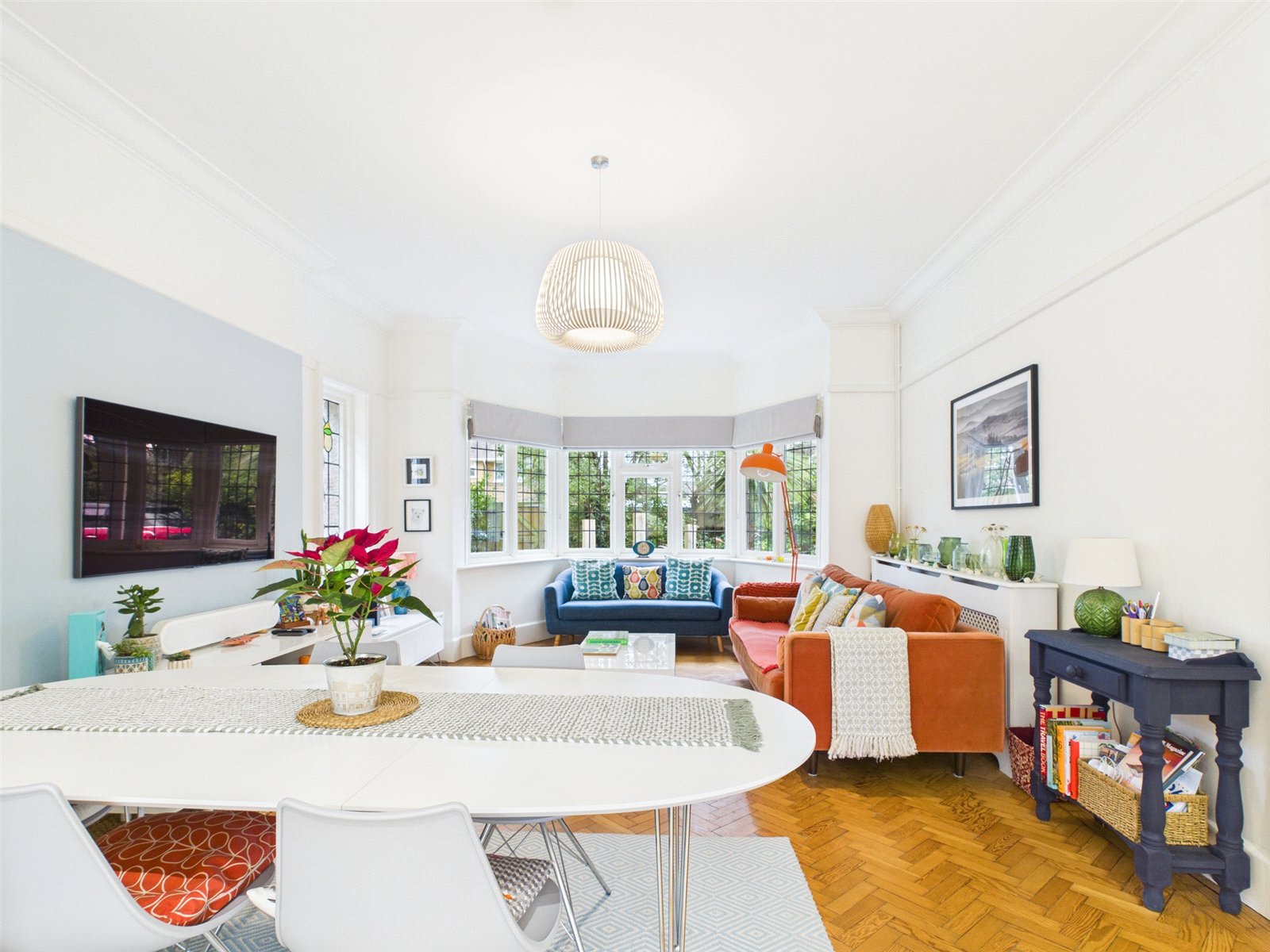 The additional living room is a great space to relax, with space for furniture, a gorgeous bay window and a feature log burner. Parque flooring and original stained glass windows really do add a touch of class to the space.