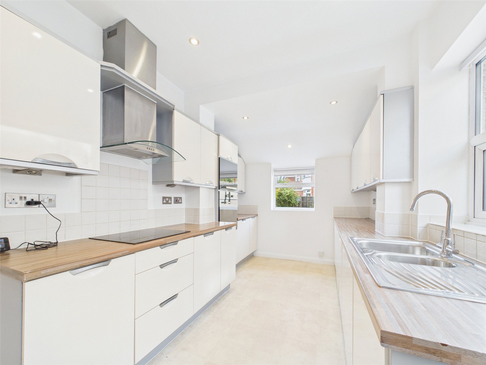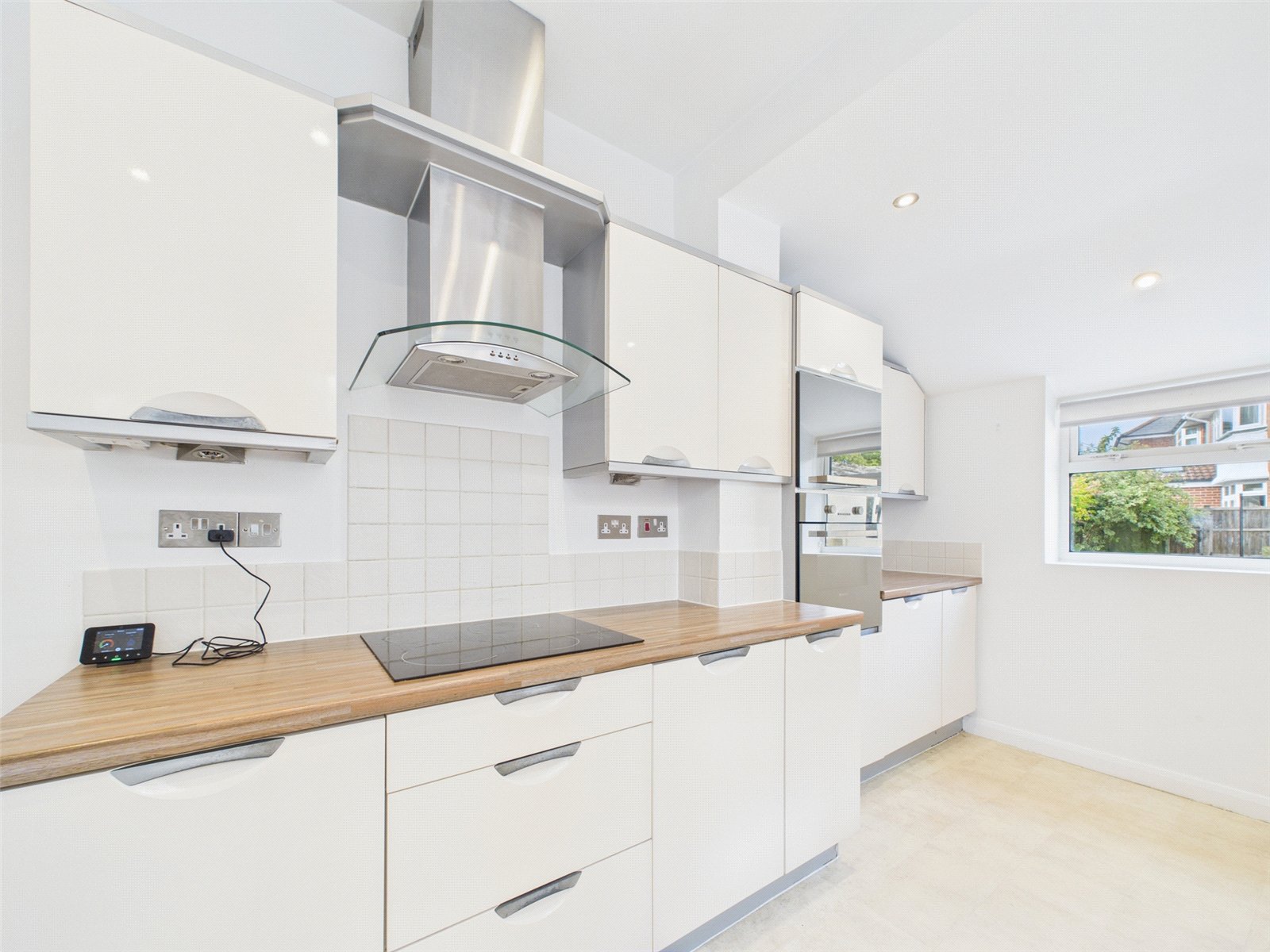 The kitchen is set adjacent to the lounge/diner and is fitted with a good range of modern soft close units set above and below wooden work surfaces with under unit lighting. There is an inset electric hob with extractor above, a fan assisted electric eye level oven and an integrated fridge/freezer, washing machine and dishwasher. Windows overlook the side and rear of property and a door gives access to the side driveway.
