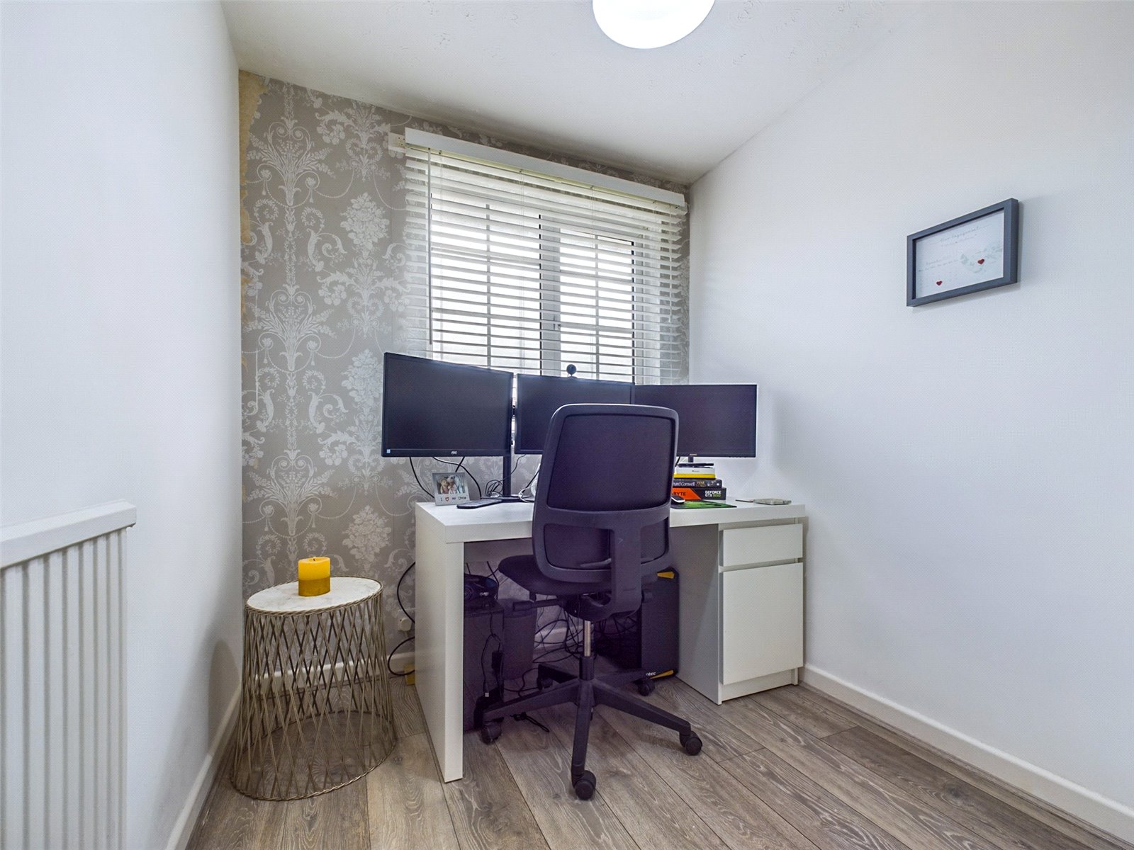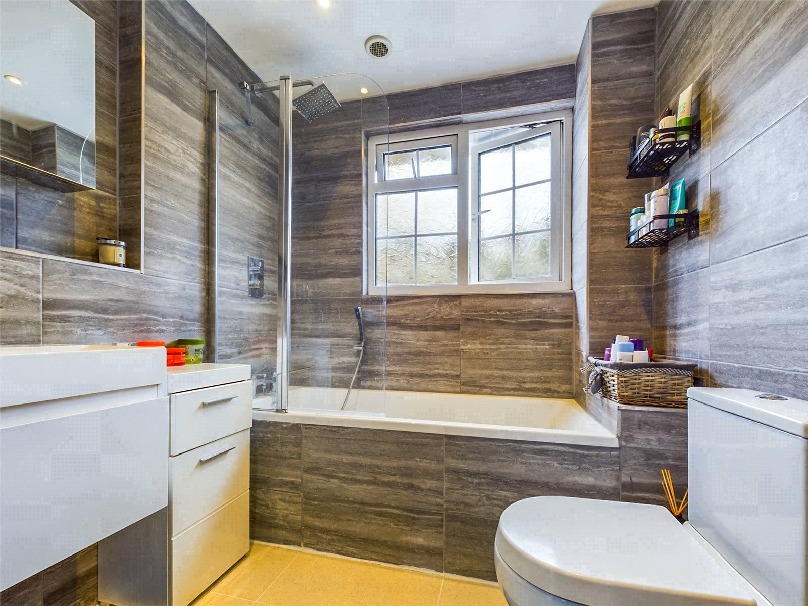 On the first floor landing is the cupboard that houses the modern combi gas boiler, access to the loft, and doors to the three bedrooms, two of which are good size double rooms, and the modern bathroom. This comprises a bath with rain forest shower head and removable shower attachment and fitted with a splash screen, wash hand basin in vanity unit, and a WC. Fully tiled with a heated towel rail and an obscured glazed window.