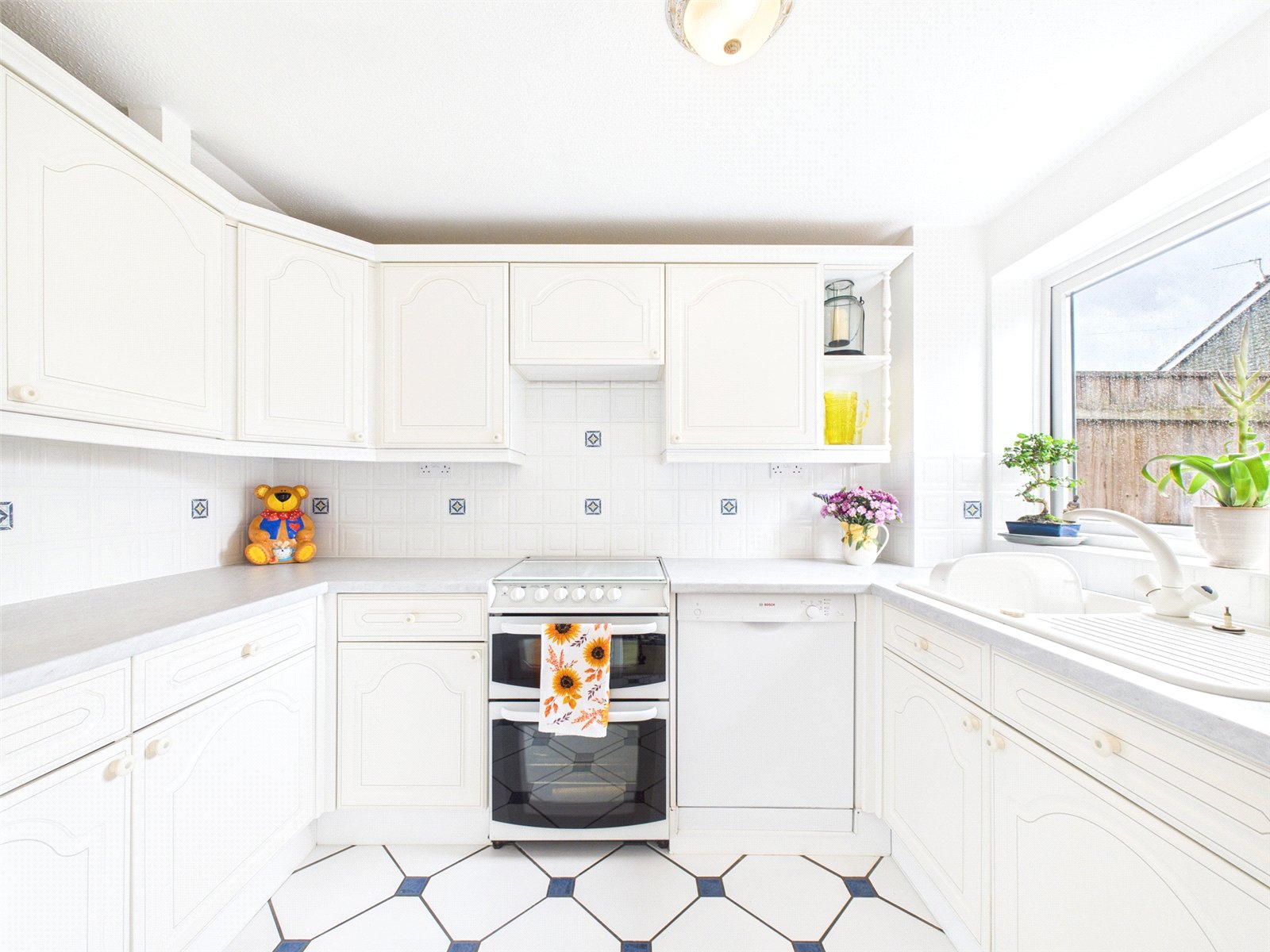 The Kitchen which enjoys a pleasant outlook over the Garden offers a selection of cupboard and drawer units, there is a freestanding cooker and space for a selection of appliances.