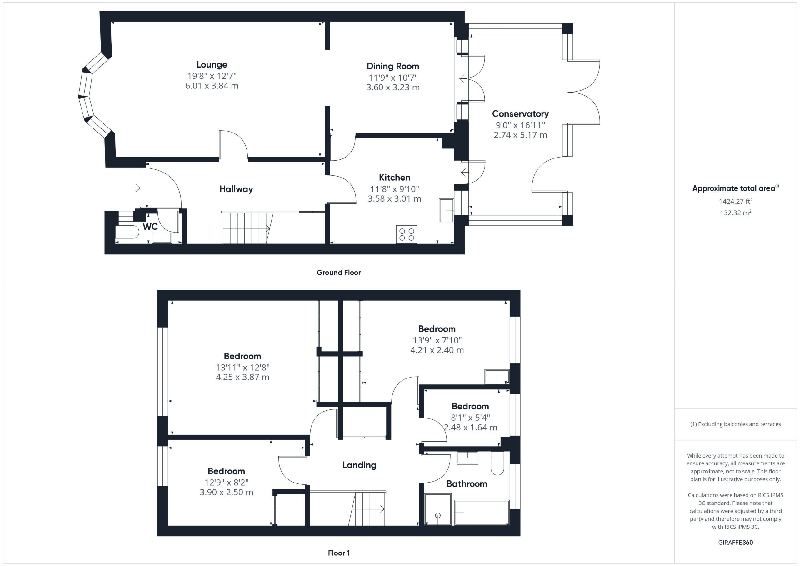 A large Lounge enjoys a feature sash style bay window to the front and a fireplace. It opens, in turn, to a good size Dining Room which offers twin doors to the Conservatory and a further door to the Kitchen.