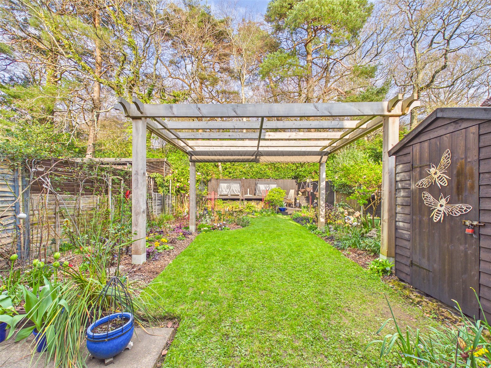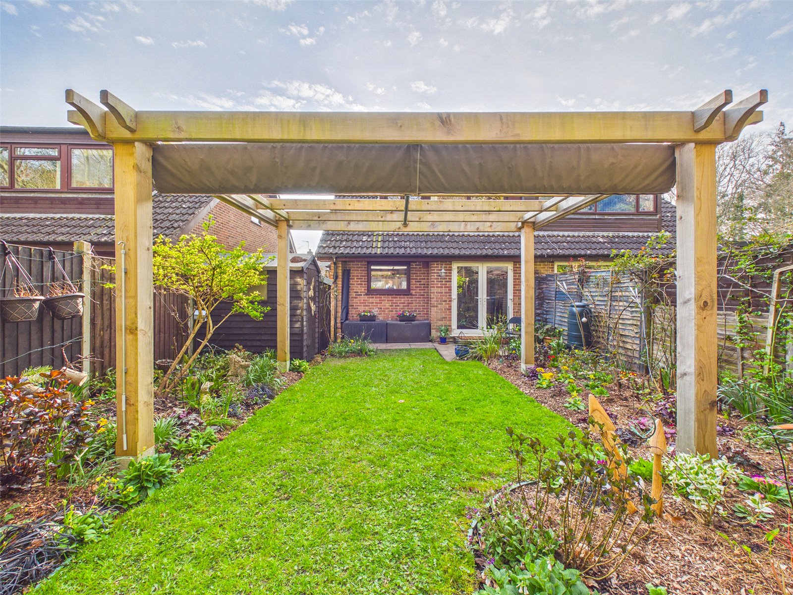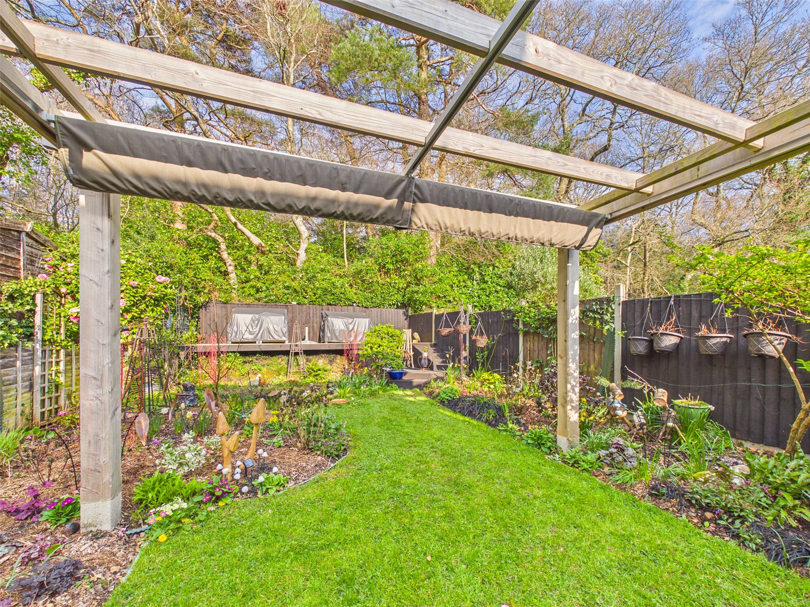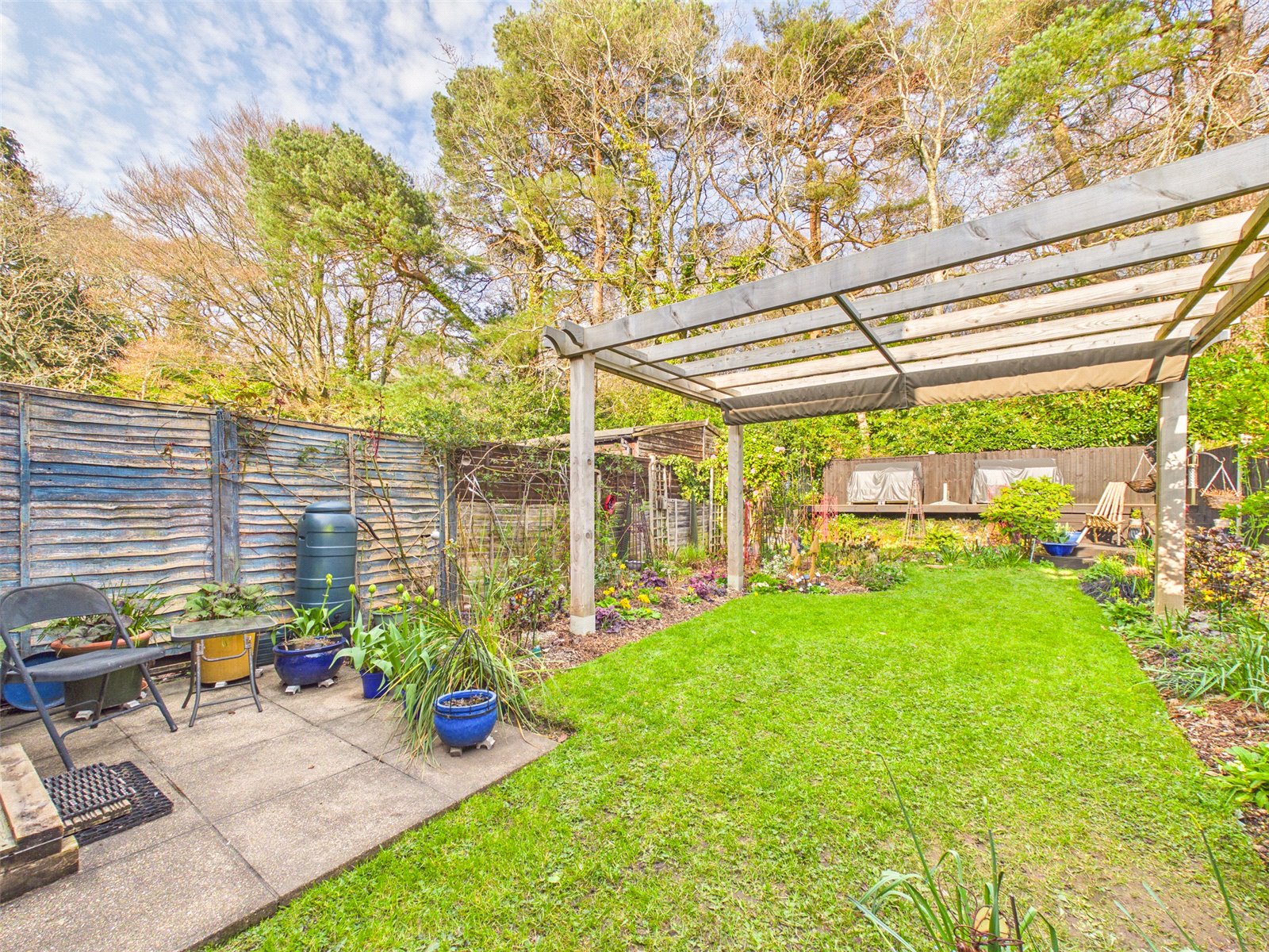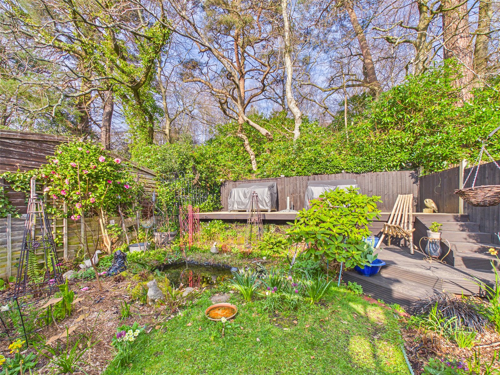 The Mature Garden has a Patio and an area of lawn with shrub borders. A pond can be found to the rear along with tiered seating.