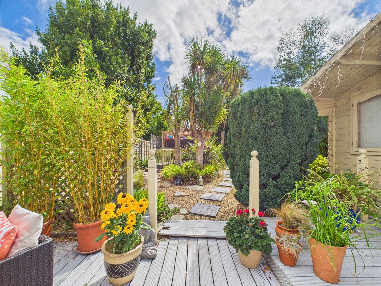 Externally, there is off road parking to the front of the house, whilst the rear garden has been beautifully landscaped with a decked area immediately abutting the rear of the house, a central area of lawn and a raised decked area to the rear. There is a timber shed adjacent to the rear decked area and a great garden room equipped with power and light at the other end of the garden.