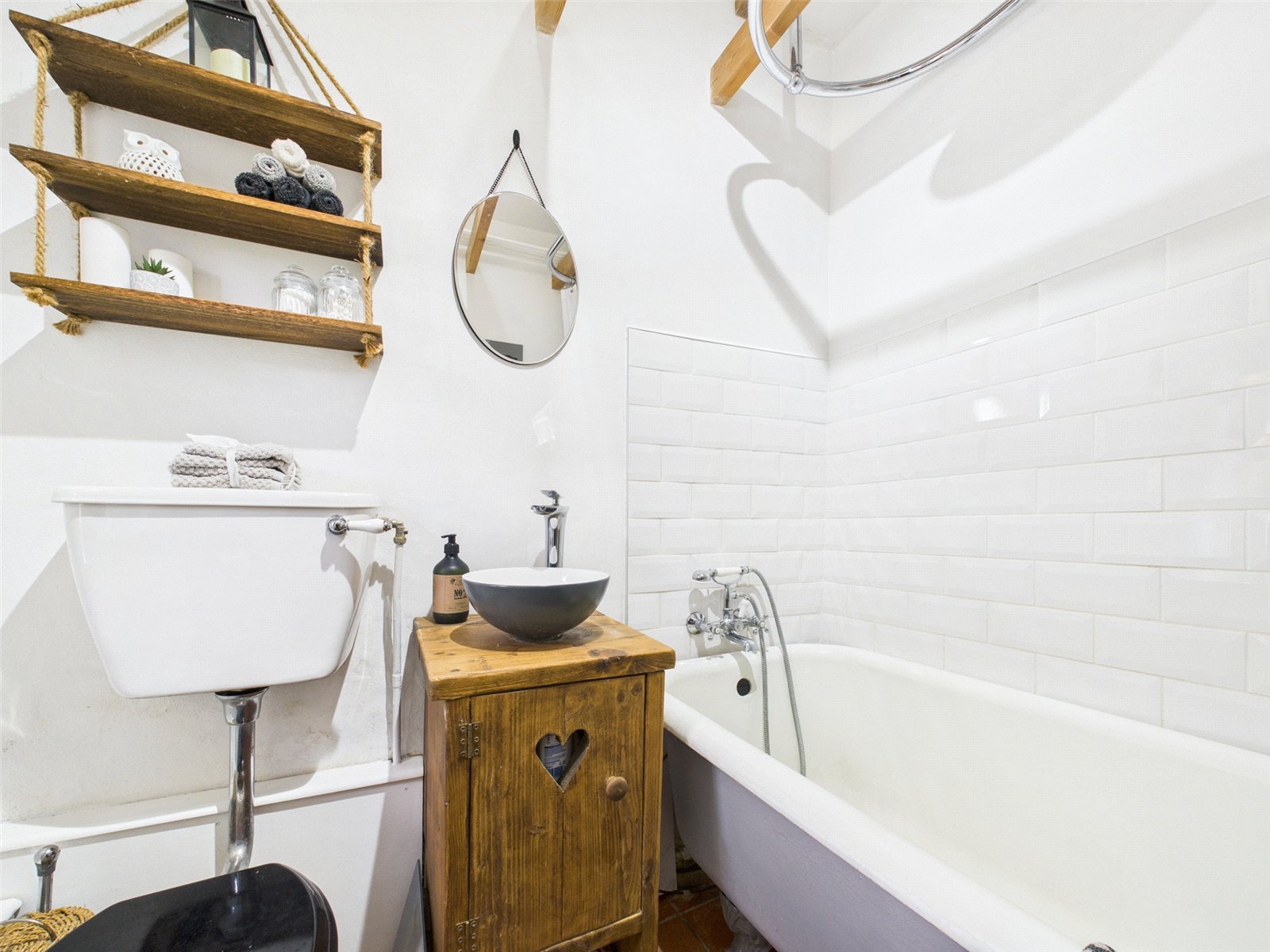 A tasteful Bathroom offers a 3-piece suite incorporating a roll top bath.