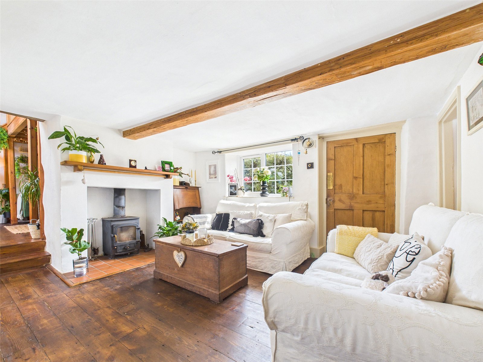 At the hub of the home, a charming Sitting Room features a chimney breast with wood burning stove and exposed wooden flooring.