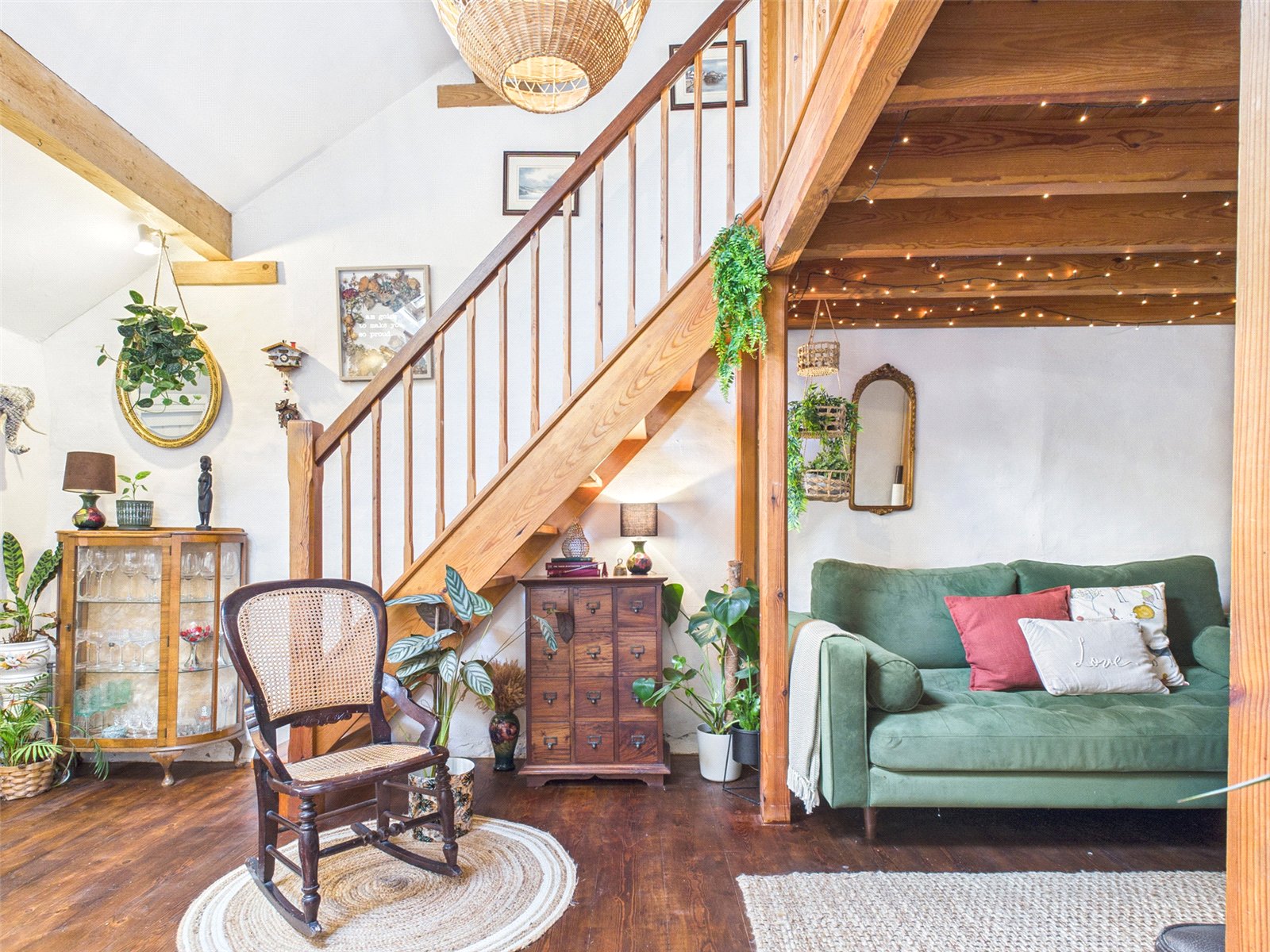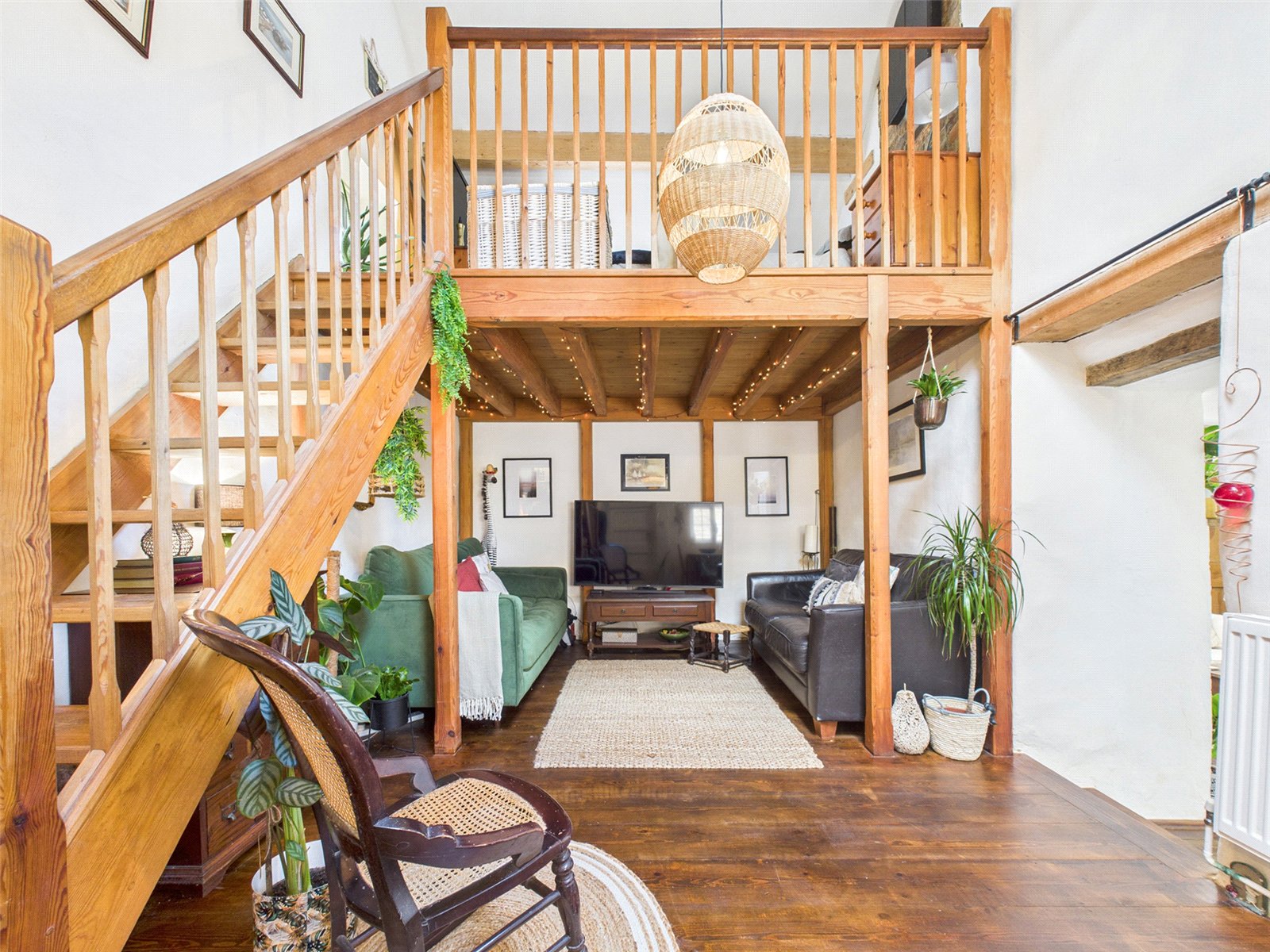 A second Reception Room, ideal as a Living/Dining Room enjoys a feature beamed and vaulted ceiling and stairs to a mezzanine level which could be utilised as a fourth Bedroom.