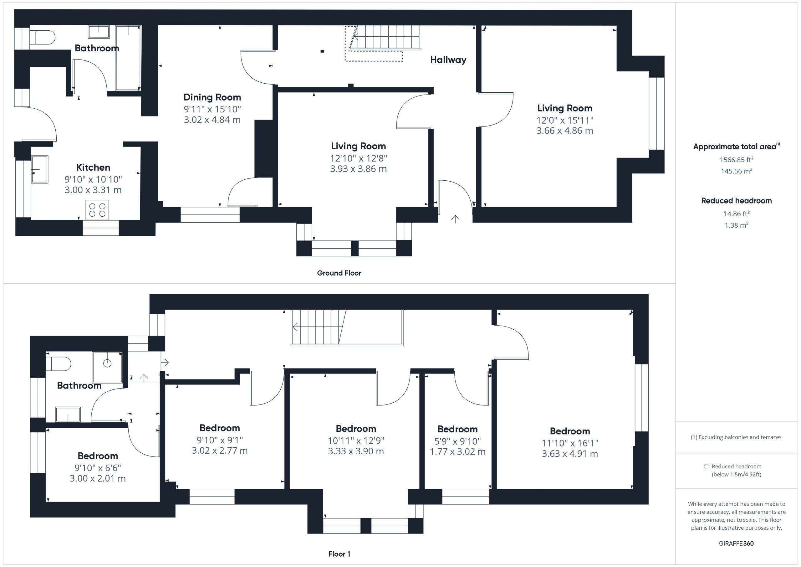 Entering the property there is a covered porchway, a door then leading to an L-shaped hallway which has stairs to the first floor and doors leading to all three reception rooms.