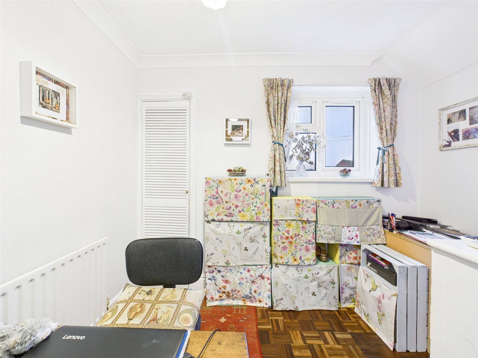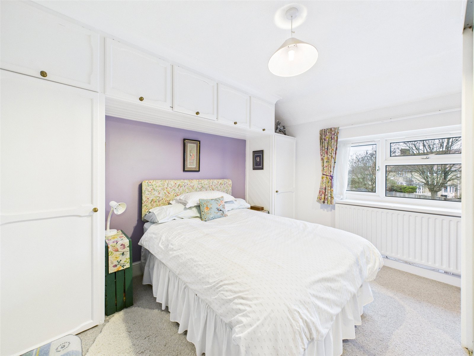 From the central hallway, you’ll find two bedrooms. The main bedroom is a generous double room with space for wardrobes and additional furniture, while the second bedroom works well as a guest room, home office or nursery.