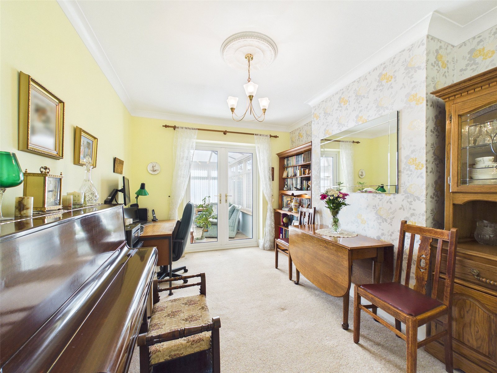 The front door leads into the entrance hall with stairs rising to the first floor landing. The lounge is set to the front of the property, while the separate dining room is positioned to the rear, with doors leading through to the conservatory. The kitchen features a range of base and eye level units with an integral cooker and hob.