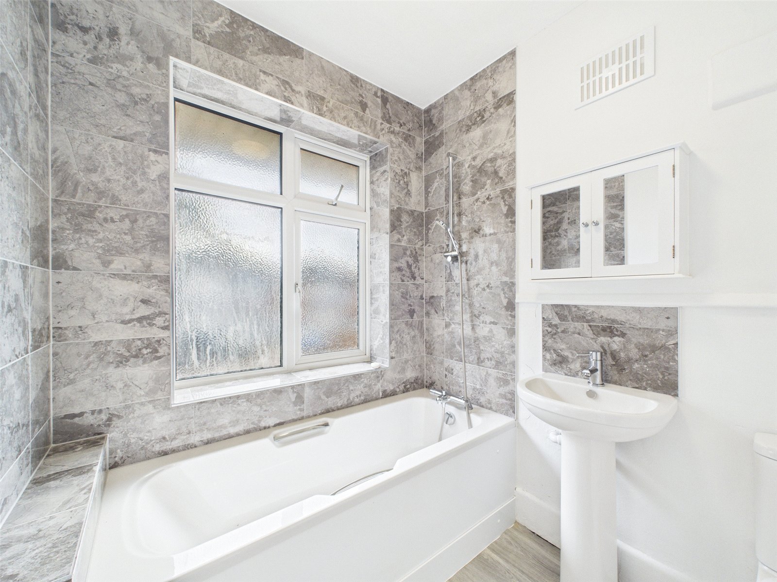 The bathroom has been updated in relatively recent times and fitted with a white suite to include a full sized bath with mixer shower over.
