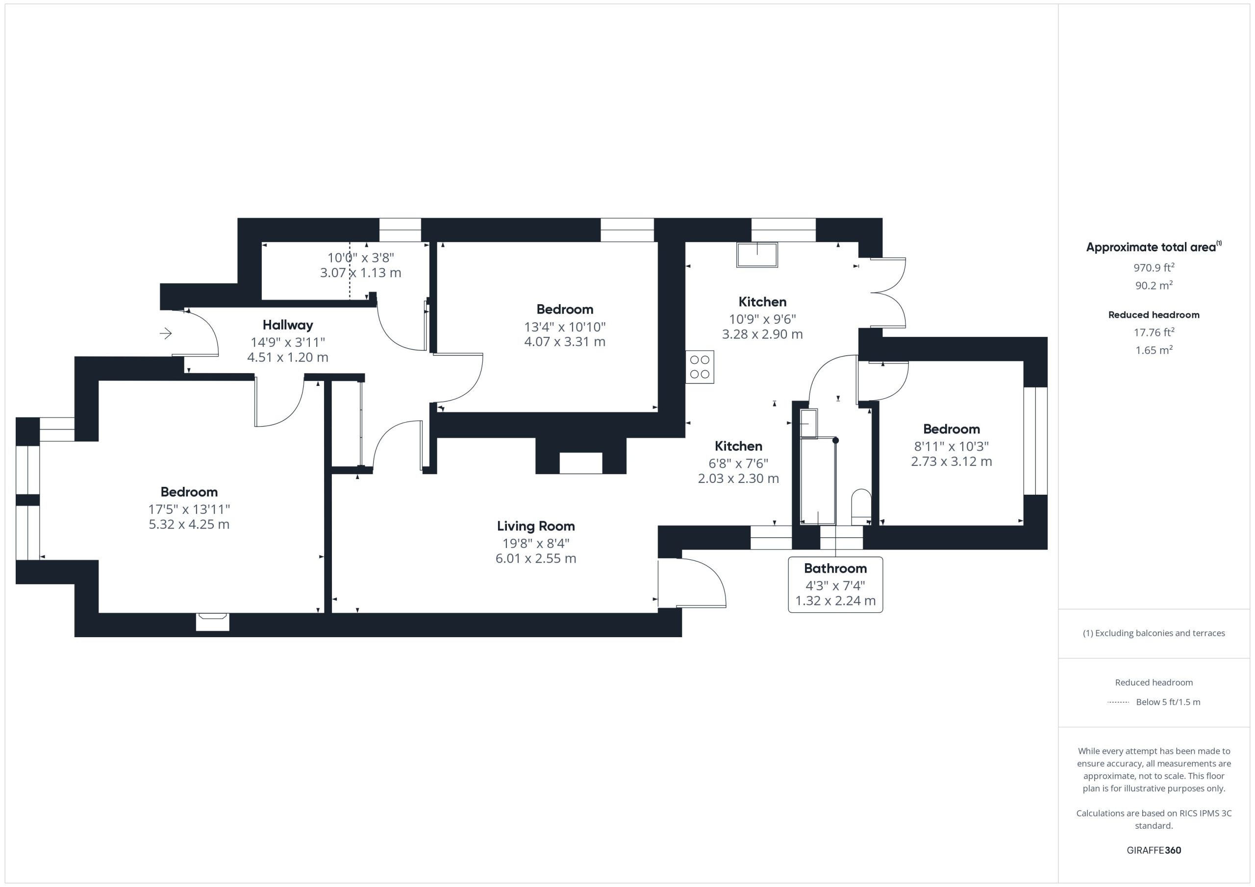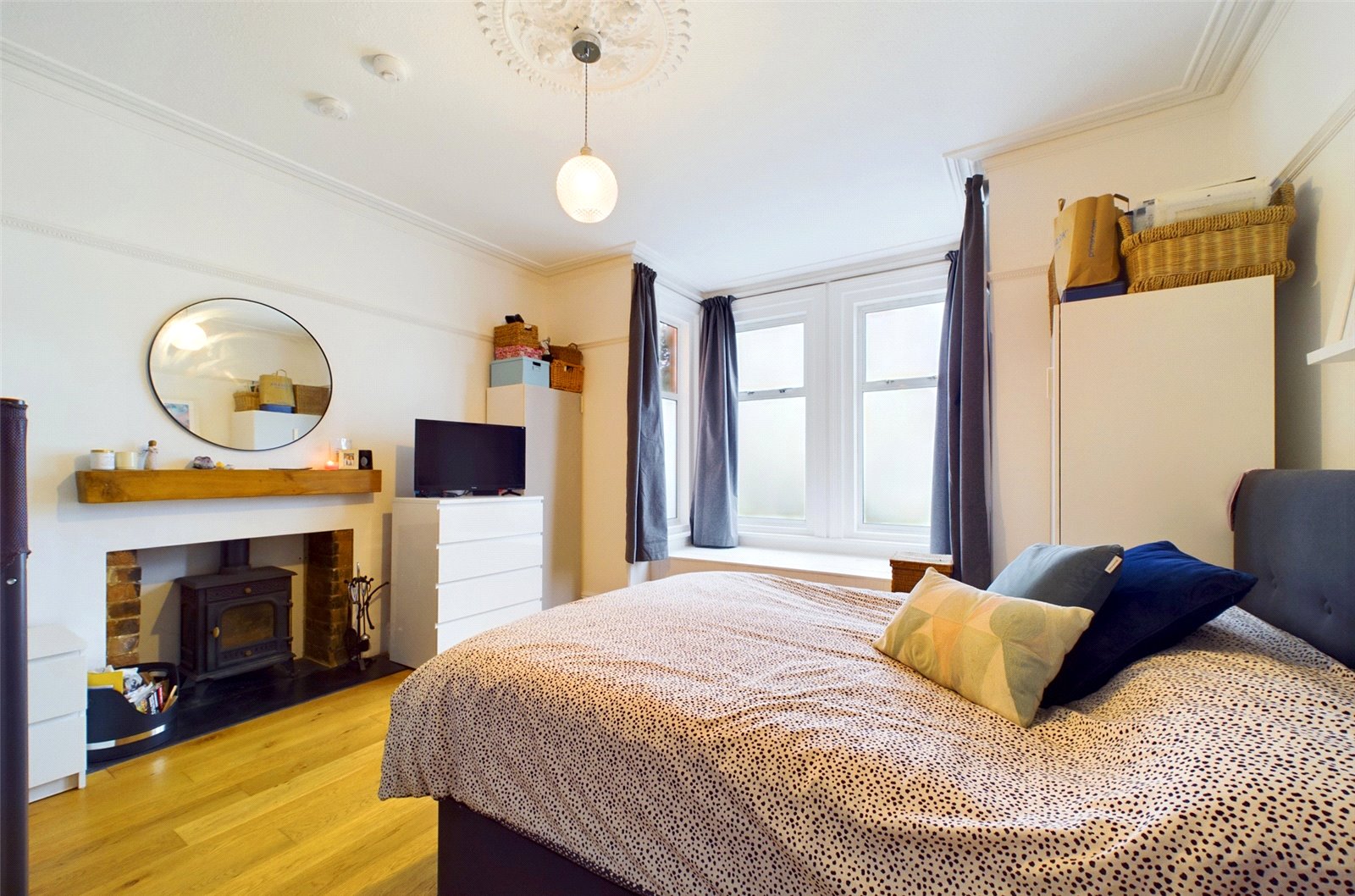 Set to the front of the apartment, the formal living room, which could/is being used as an additional bedroom, is a great sized room with high ceilings and a large box bay window making the room feel even larger. There is ample space for a variety of furniture and a feature log burner.