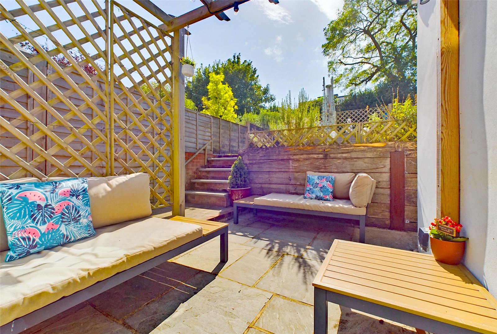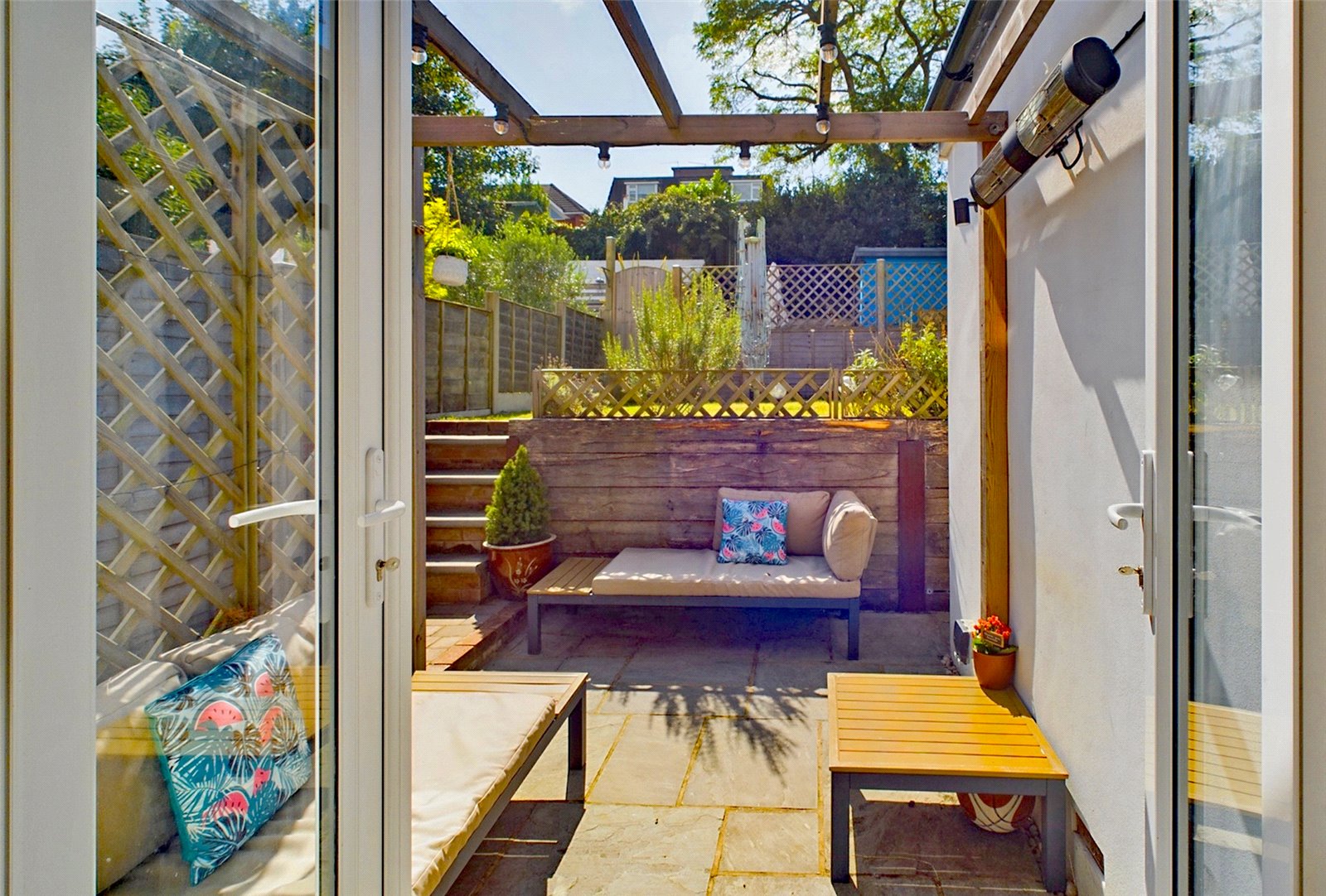 The two tiered garden offers a great space to relax and entertain. Immediately abutting the rear there is a wraparound patio area with heating and seating one side and a hot and cold outside shower the other. Stairs lead to the upper garden which is laid to lawn. Although the garden is private and belongs solely to the ground floor apartment, please note the first floor apartment has right of access to one side to access their garden.