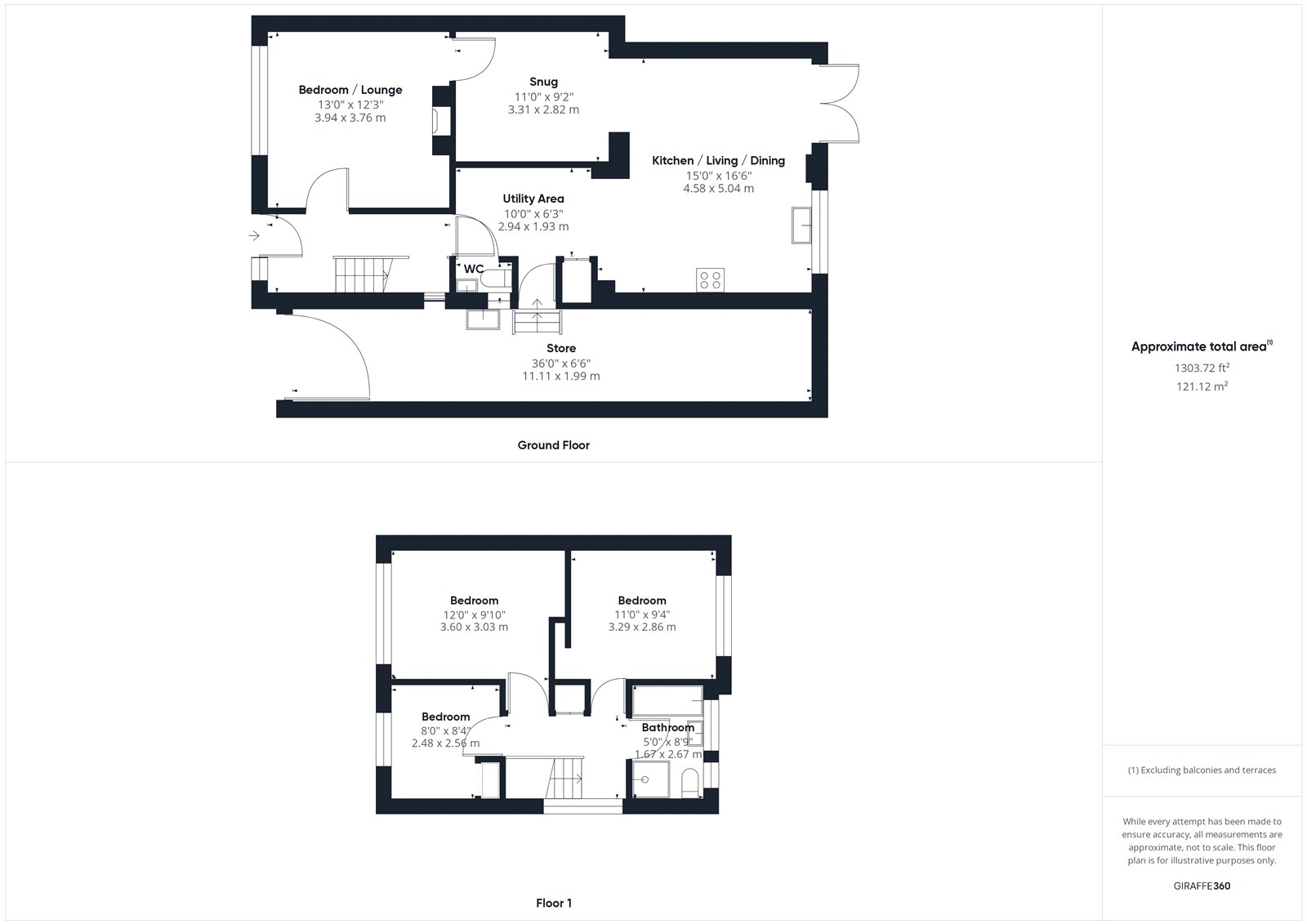 - Three/four bedrooms, one on the ground floor