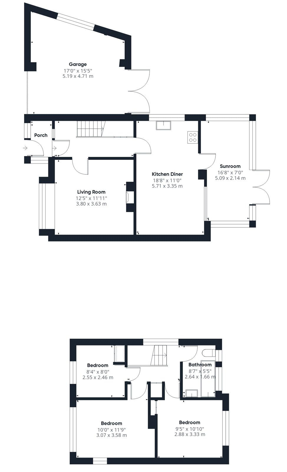 • Three bedrooms
