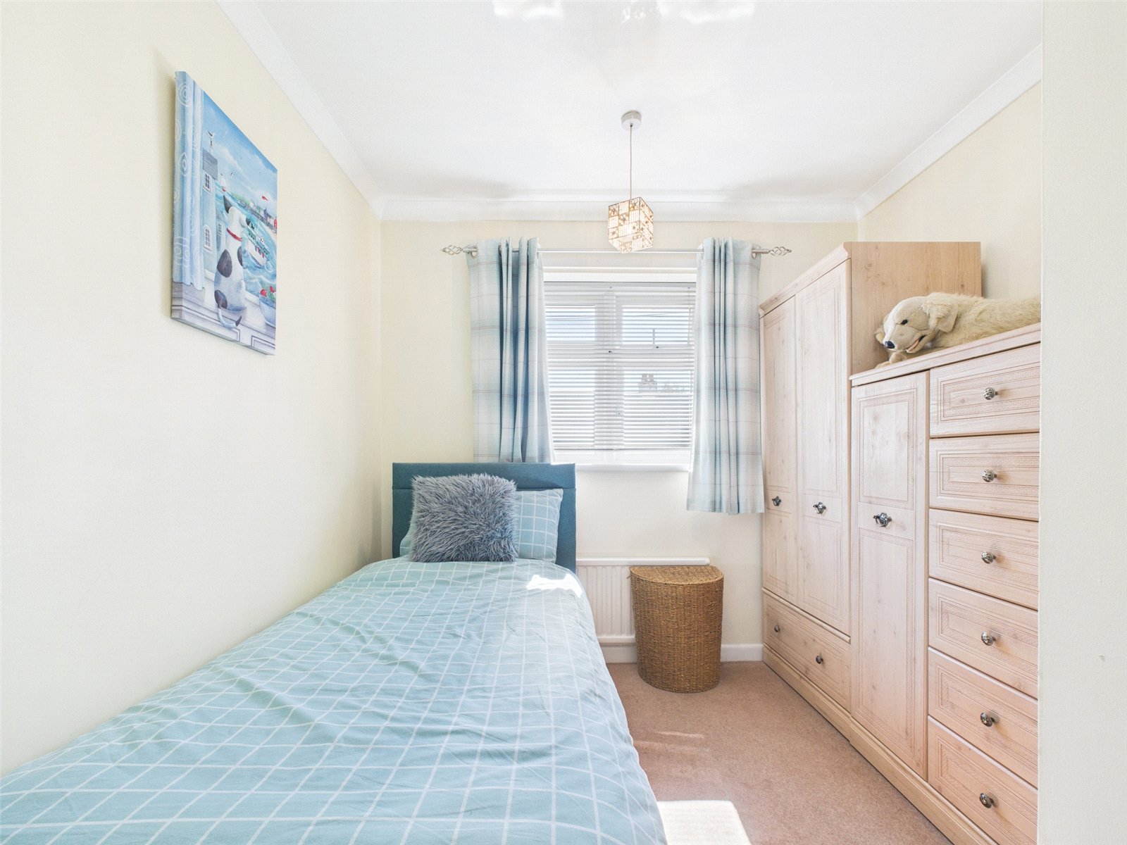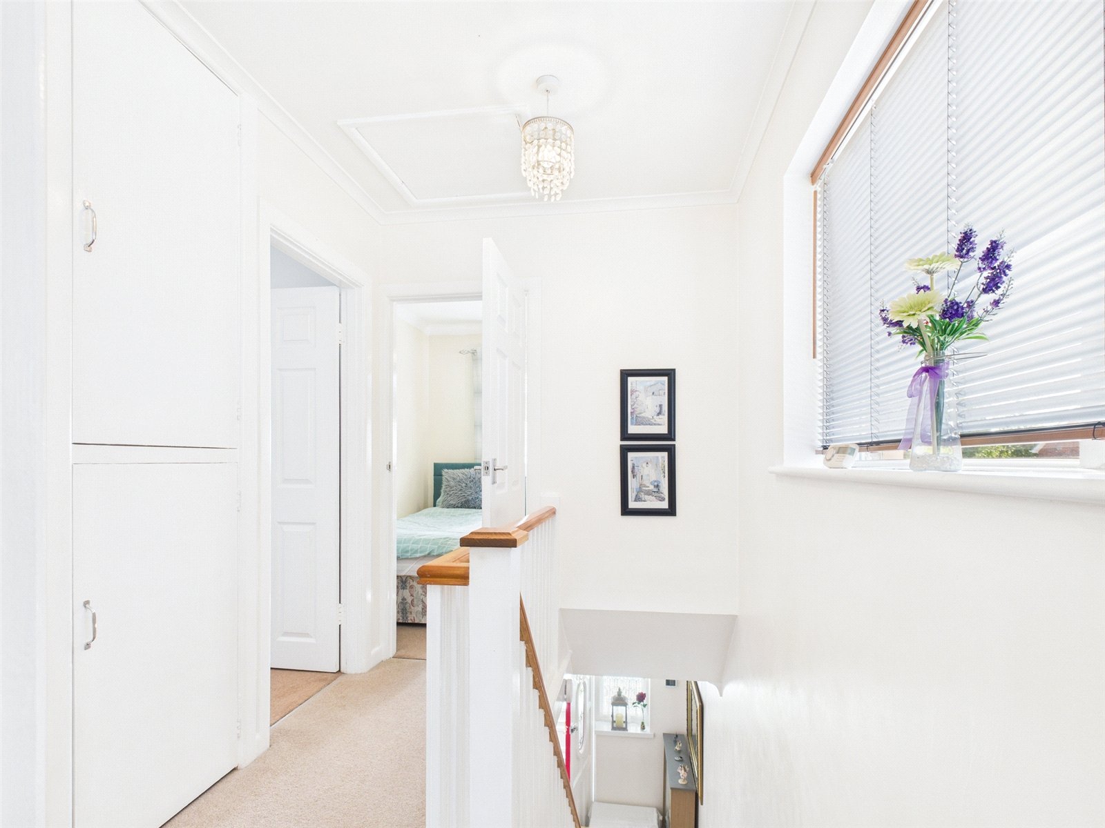 On the first floor there are three bedrooms. On the landing is the loft hatch and the airing cupboard housing the modern combi boiler.