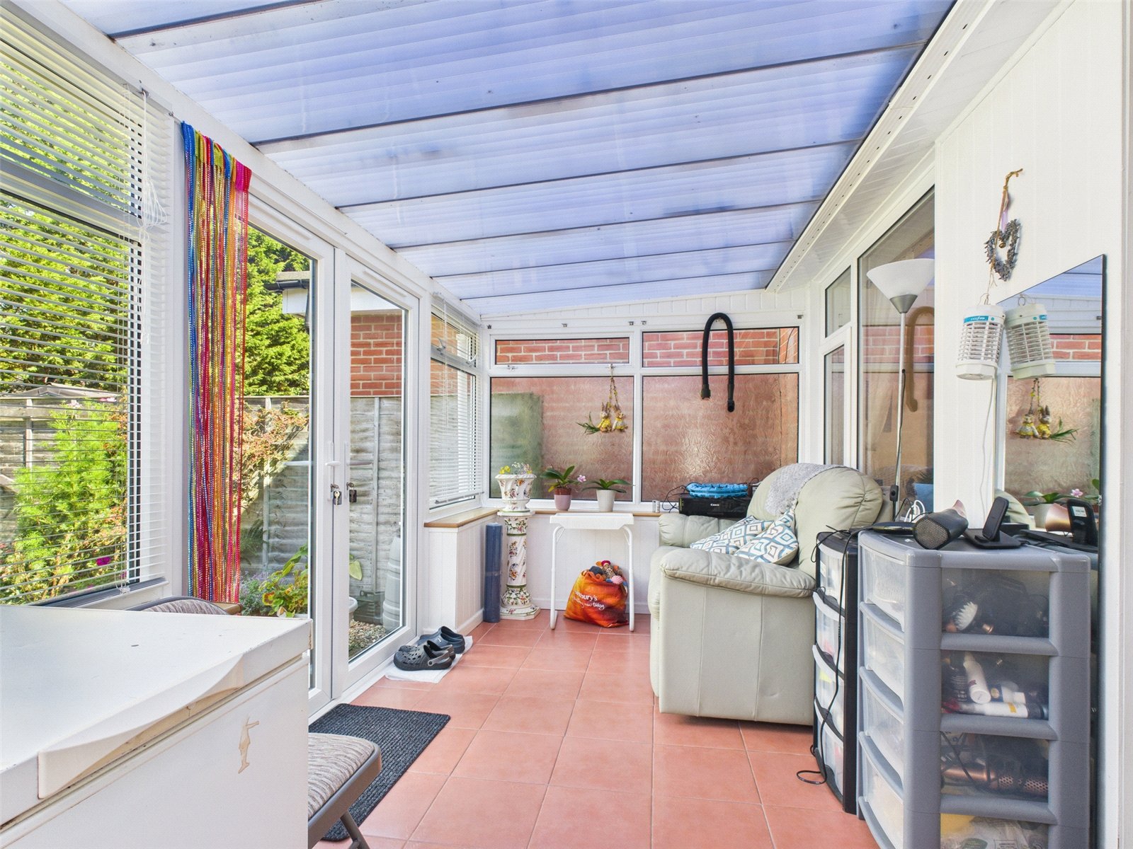 The kitchen diner has a range of eye and base level units with cupboards and drawers. Integrated dishwasher, space for a cooker and for a dining table. Door into the conservatory where there is space for additional appliances and white goods and French doors into the garden.