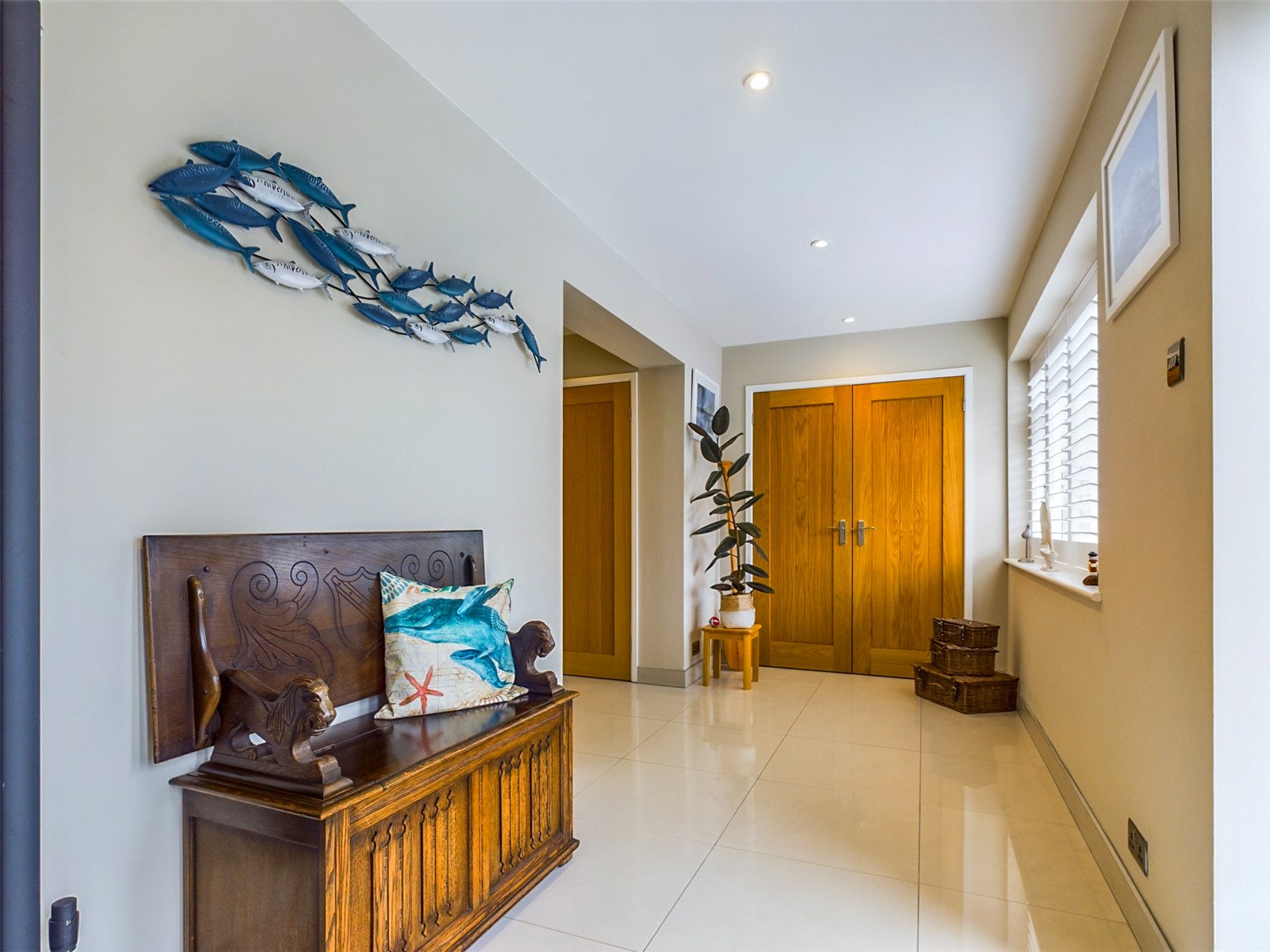 On the first floor are five bedrooms. Four of these are doubles, and the two largest both have modern, tiled en-suite shower rooms comprising a WC and wash hand basin, with a heated towel rail and obscured glazed window.