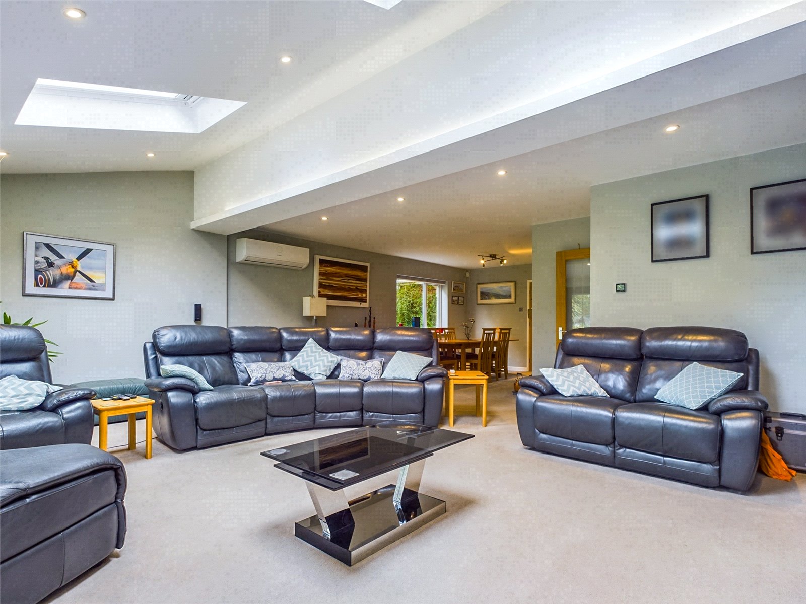 The large triple aspect lounge diner measuring approx. 30ft in depth, has a wood burner at one end, and under floor heating the other. Full width bifold doors, along with Velux windows, make this a very bright room, and the air conditioning/heating unit helps keep the temperature comfortable all year round. A further reception room also has bifold doors and Velux windows.