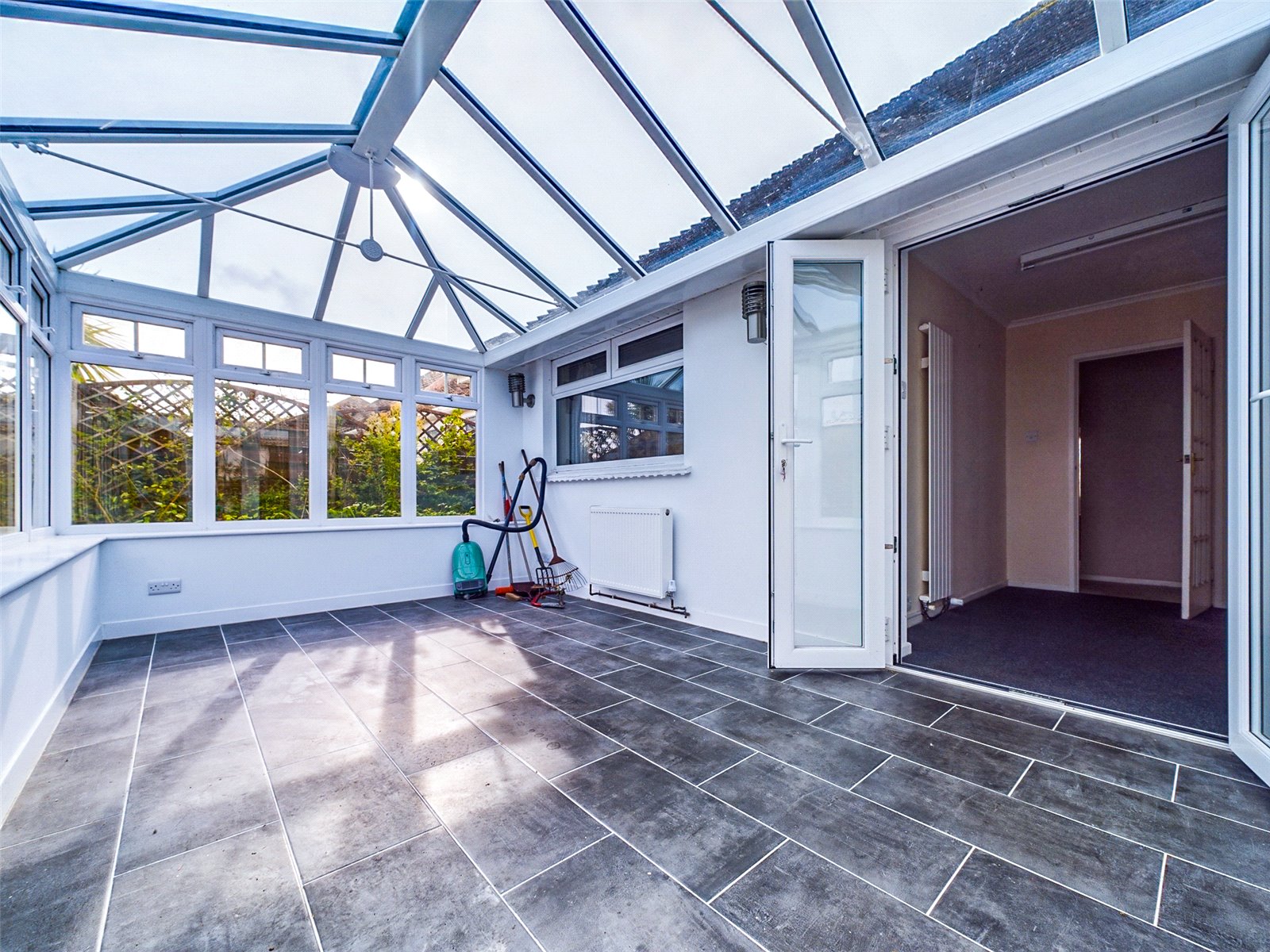The pitched roof fully glazed conservatory is accessed via a set of French doors from the kitchen and is a generous size offering space for a variety of furniture. A partly glazed door gives access into the rear garden.