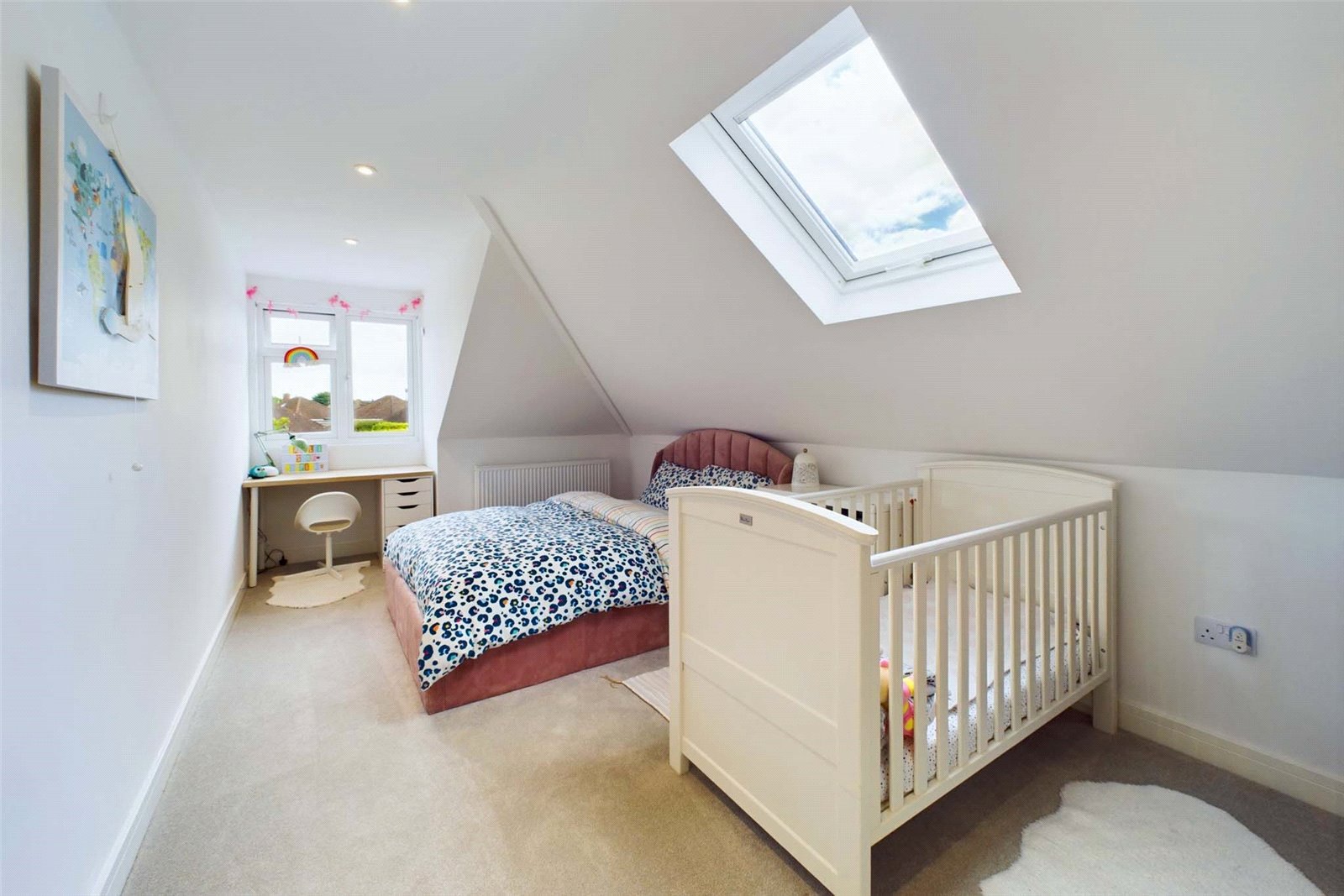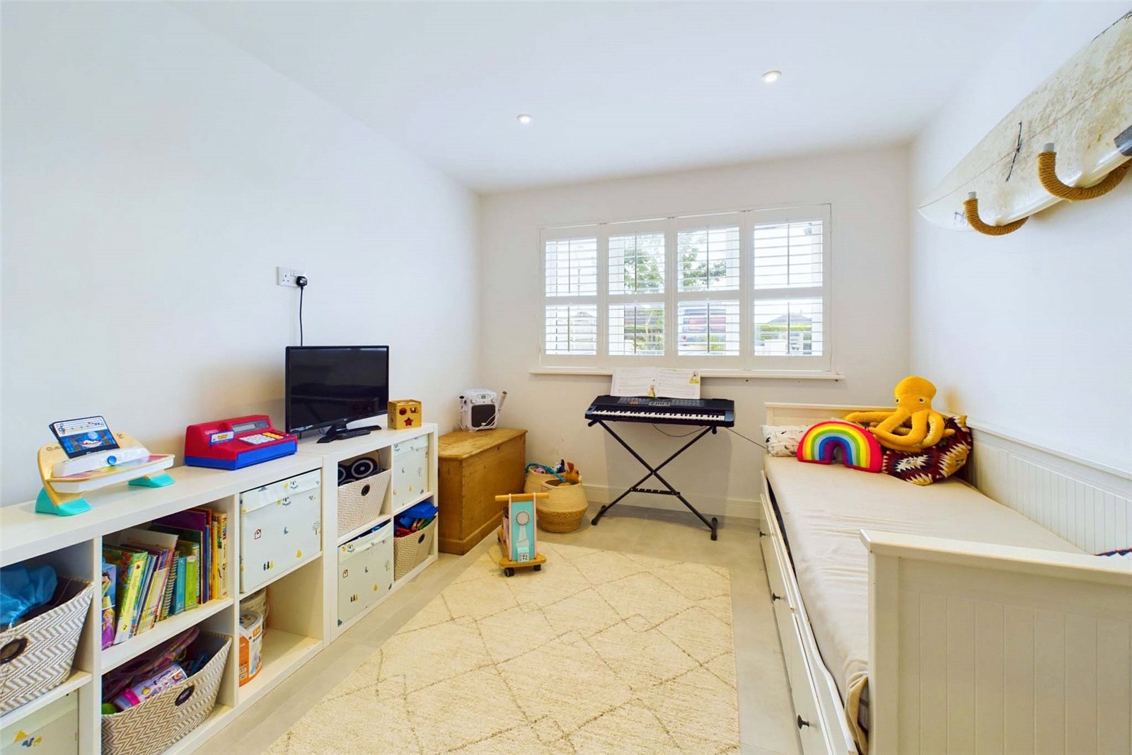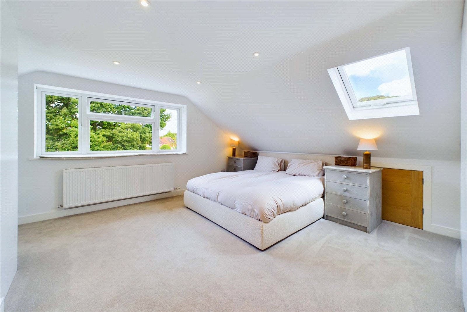 The master bedroom is particularly spacious and enjoys views over the rear gardens. It comes complete with a range of built in wardrobes and has a spacious en-suite shower room which is beautifully finished featuring a large walk in shower, a floating vanity unit with countertop sink and wall mounted mixer, a low level WC, and heated towel rail.
