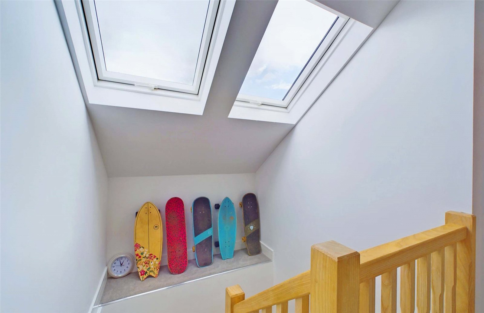 A return staircase leads from the hallway up to the first floor landing which has two large Velux windows over giving good natural light. This leads to the family bathroom and all three first floor bedrooms which all make for generous double rooms.