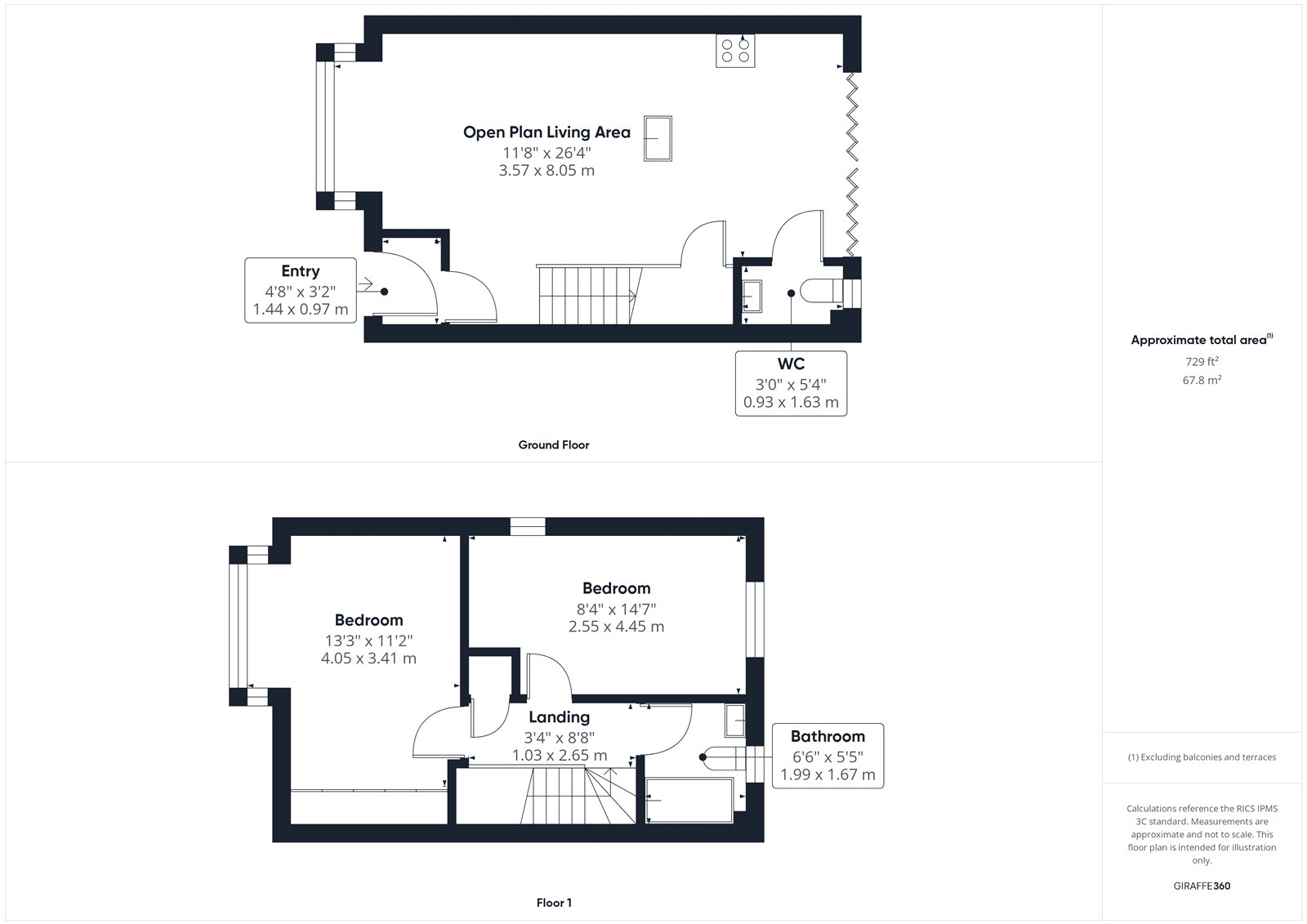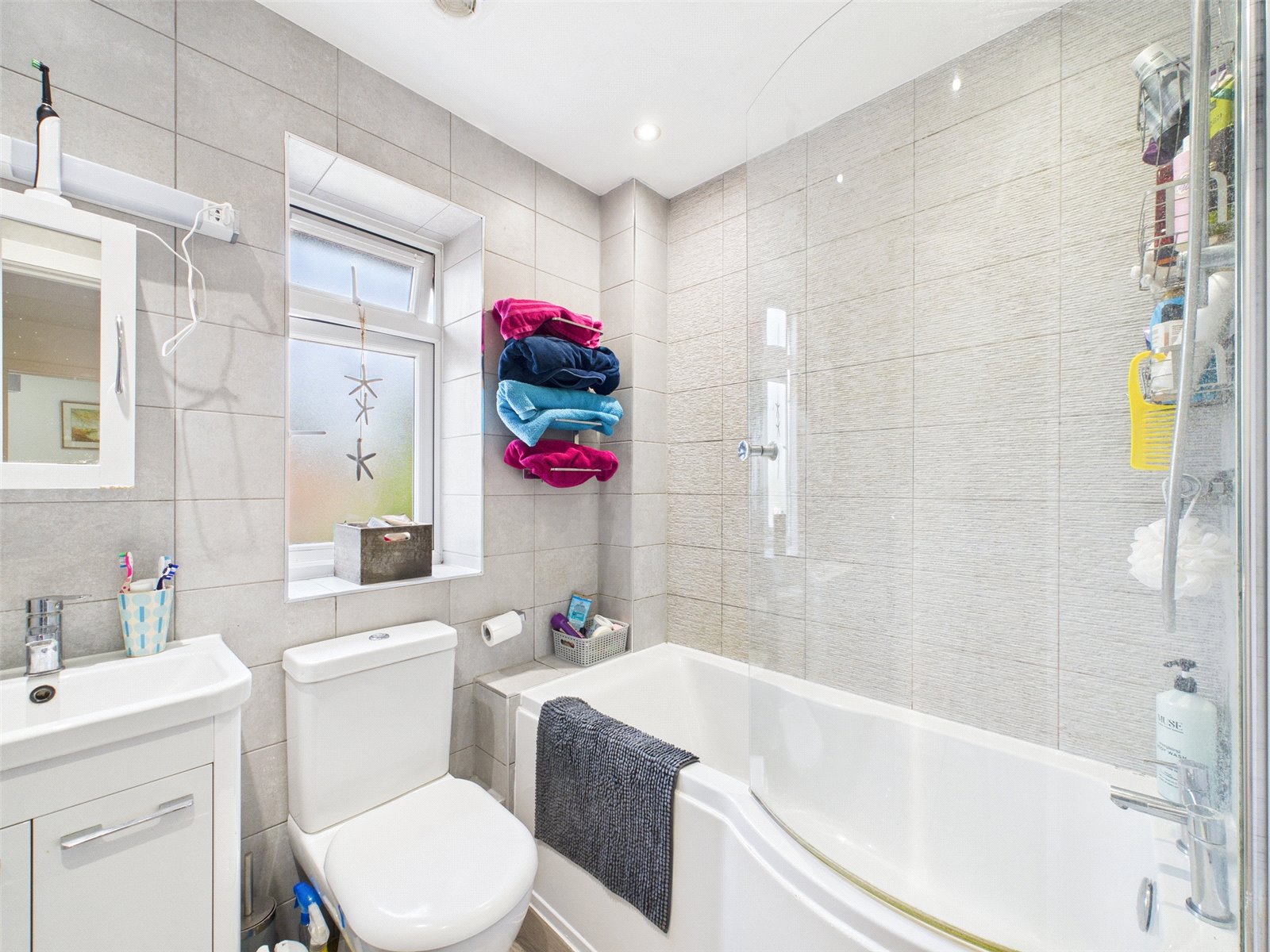 Stairs from the open plan living area lead to the first floor landing with airing cupboard and hatch to loft space. There are two double bedrooms and a bathroom with suite comprising wc, wash hand basin and bath with shower over.