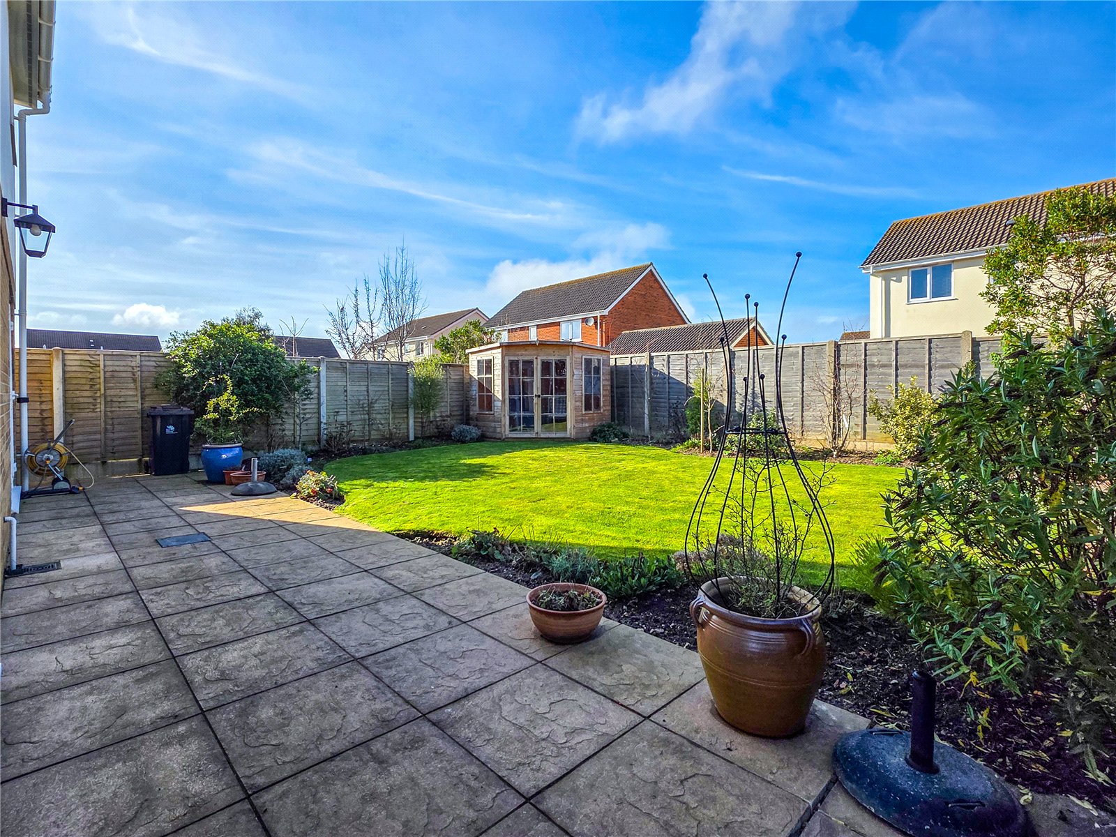 The rear garden has some westerly aspect so enjoys plenty of sun. There is a patio across the immediate rear of the house, with the remainder laid to lawn with shrubbed borders. It is bound by fence panels, has space for a shed/summer house, and access down the side back to the driveway.