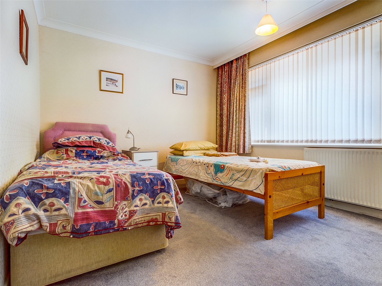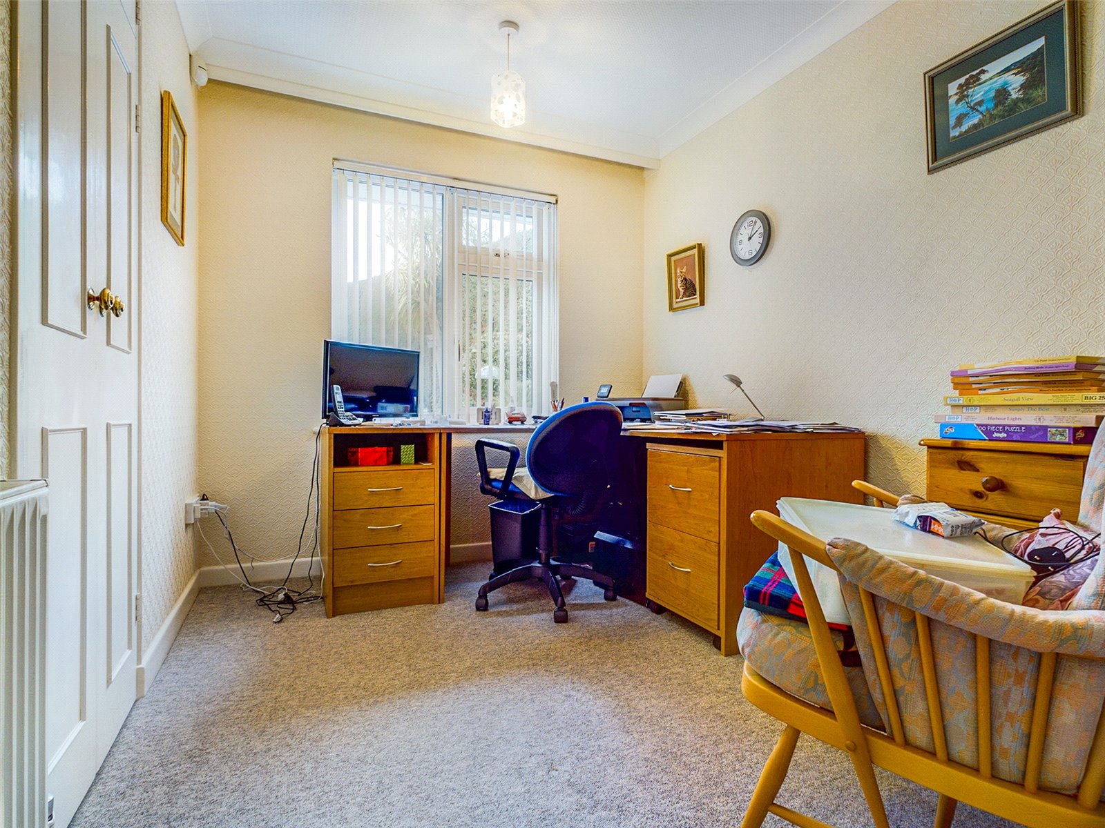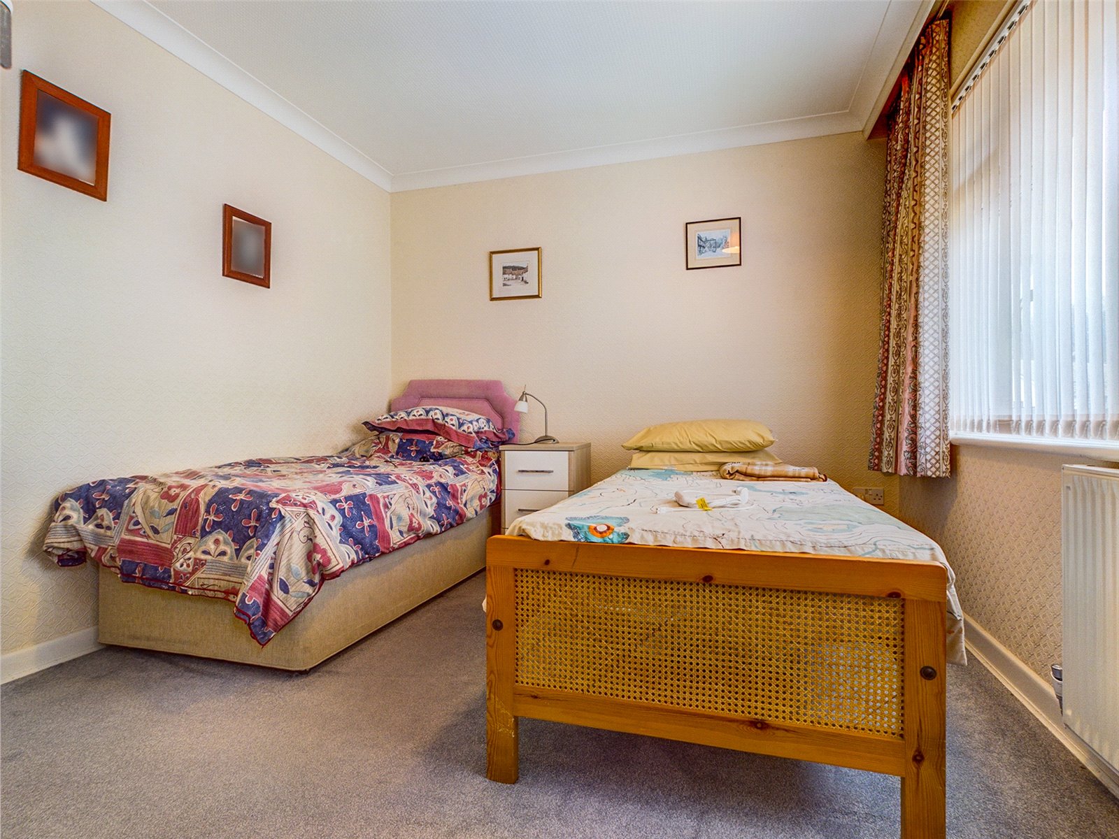 Very private rear garden mainly laid to lawn with various well established shrubs. Patio on the immediate rear of the bungalow.