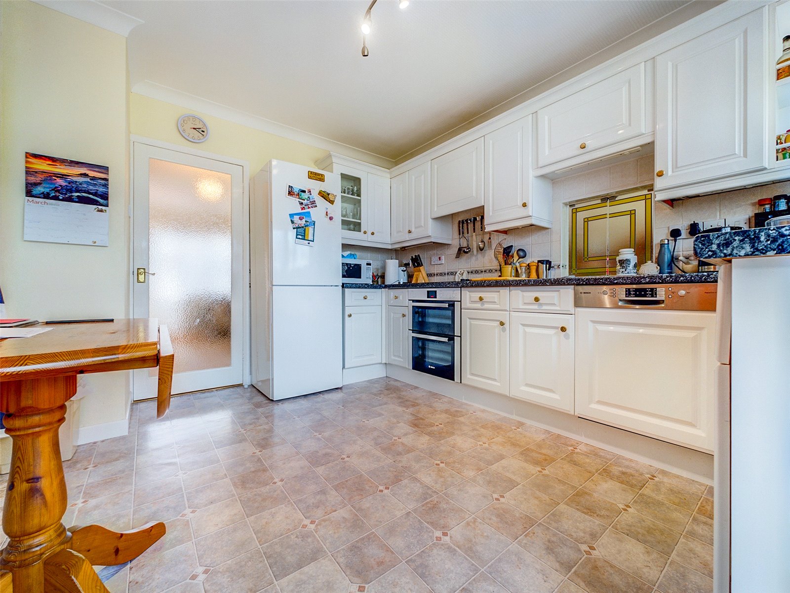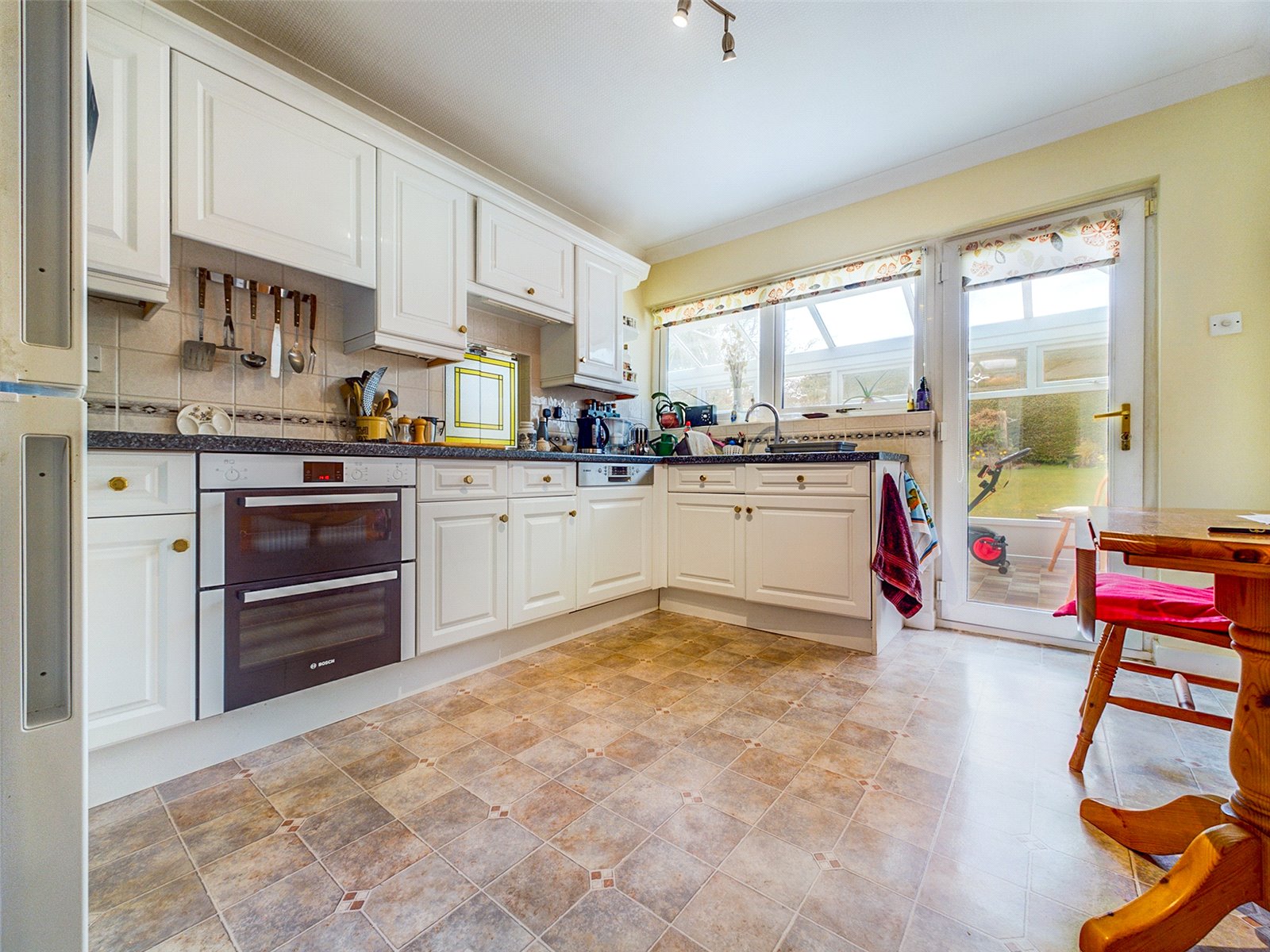 In the kitchen breakfast room is a range of eye and base level units with cupboards and drawers. Integrated oven and hob, space for white goods and a table and chairs. Further door into the conservatory.