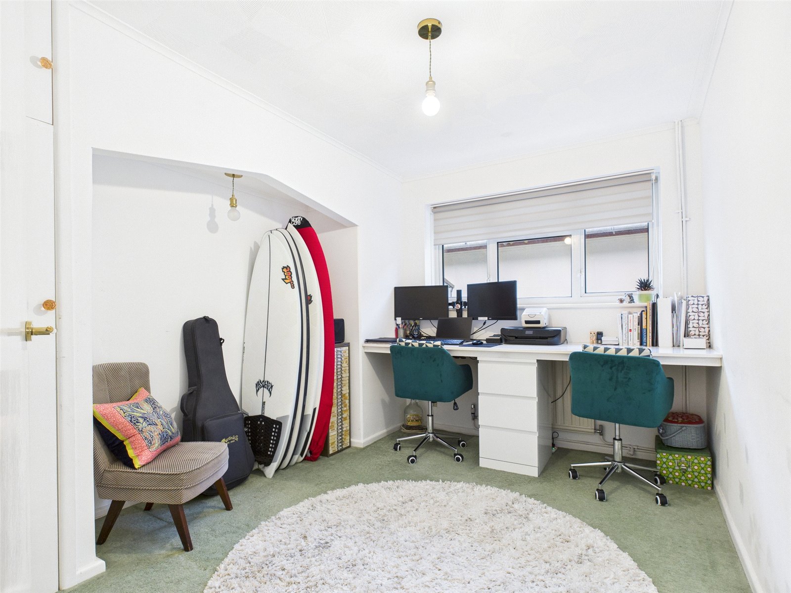 The dual aspect sitting room has potential for an open fire place, or similar. Sliding doors lead into the garden.